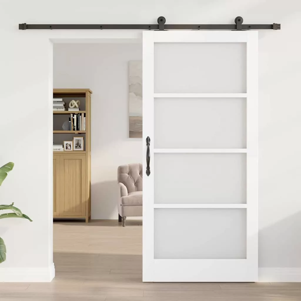 Csúszó ajtó ORKDAL Fehér 93 x 202 cm Tömör fenyőfa és üveg
