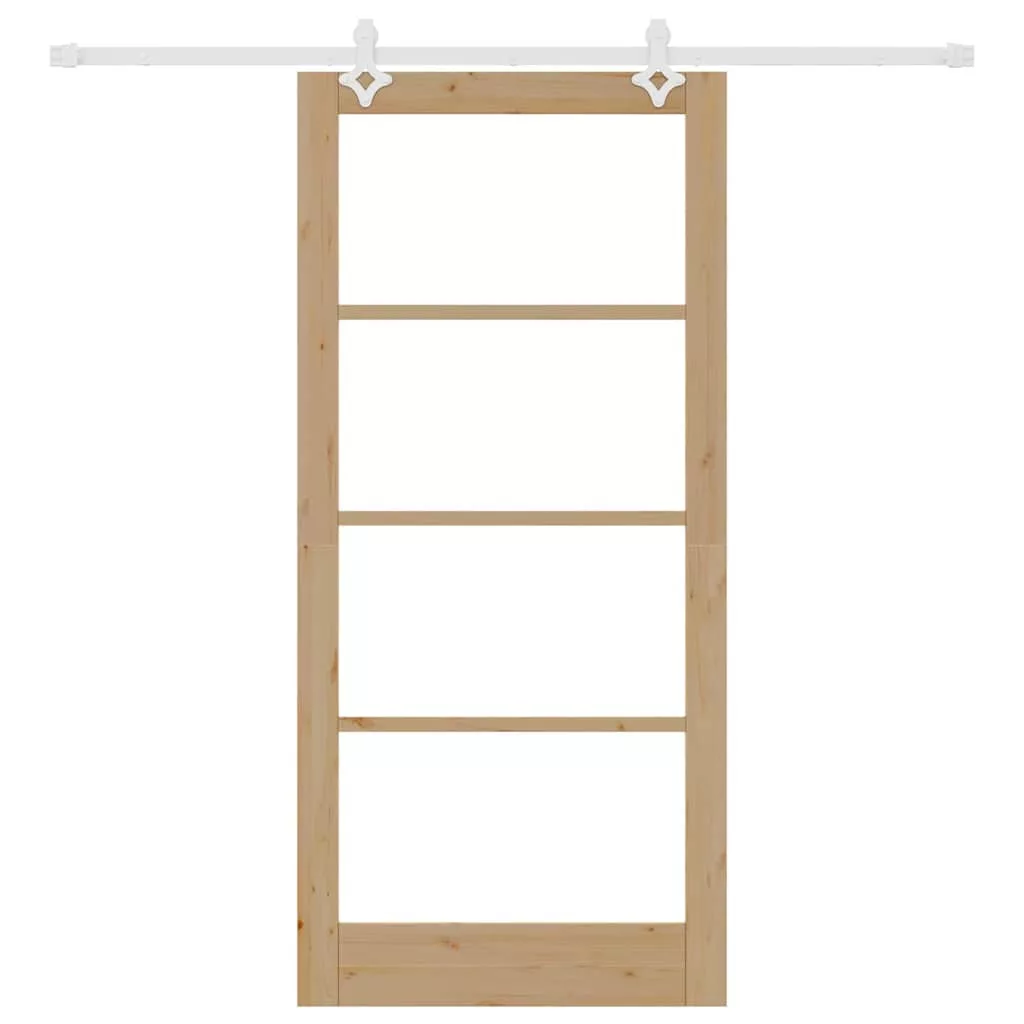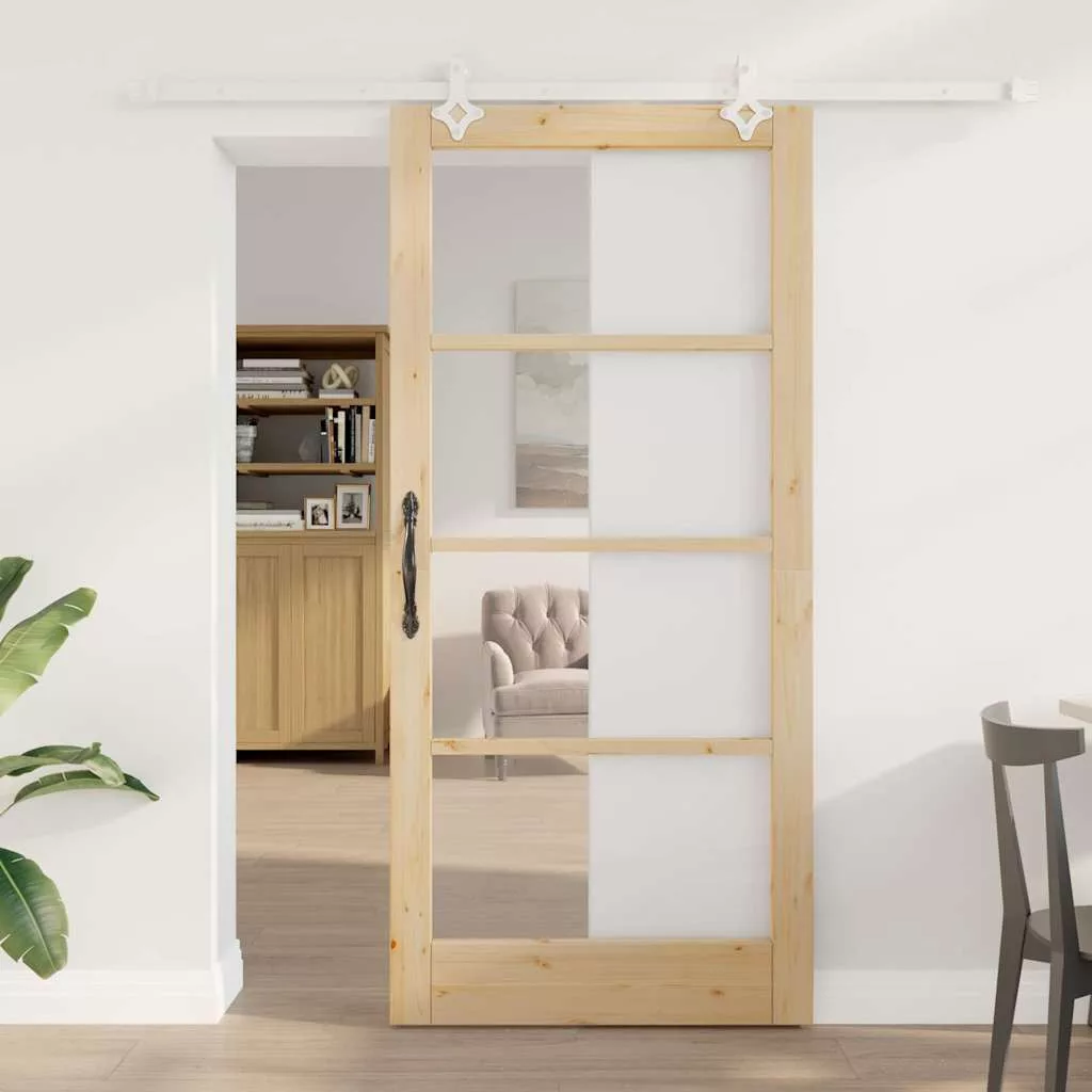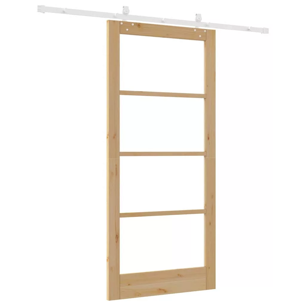 Csúszó ajtó Természetes 93 x 202 cm Tömör fenyőfa és üveg
