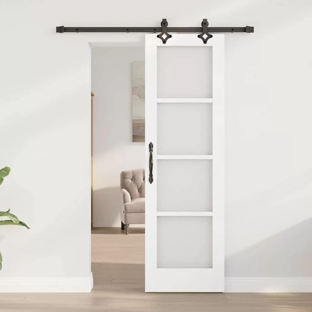Csúszó ajtó Fehér 61 x 198,5 cm Tömör fenyőfa és üveg