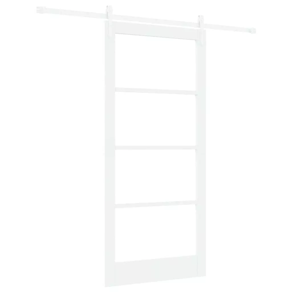 Csúszó ajtó Fehér 93 x 202 cm Tömör fenyőfa és üveg