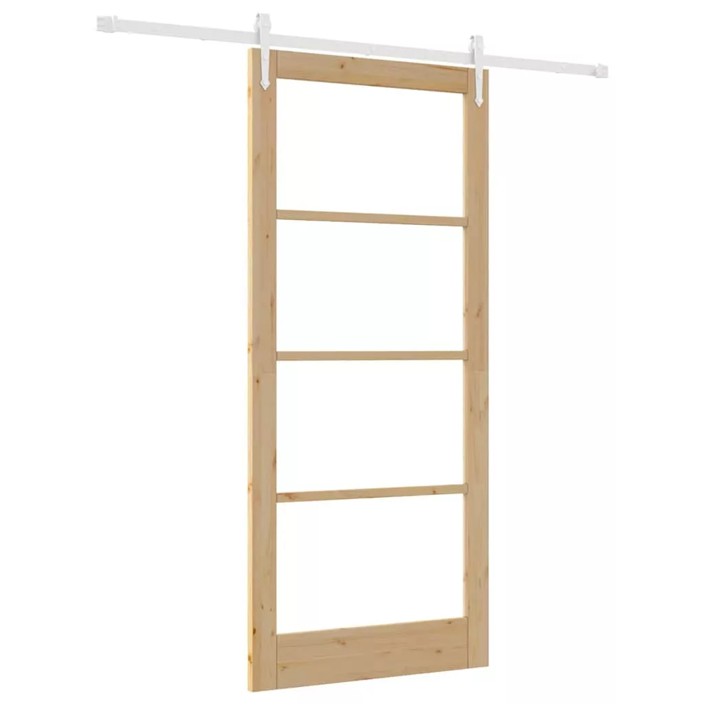 Csúszó ajtó Természetes 93 x 211 cm Tömör fenyőfa és üveg