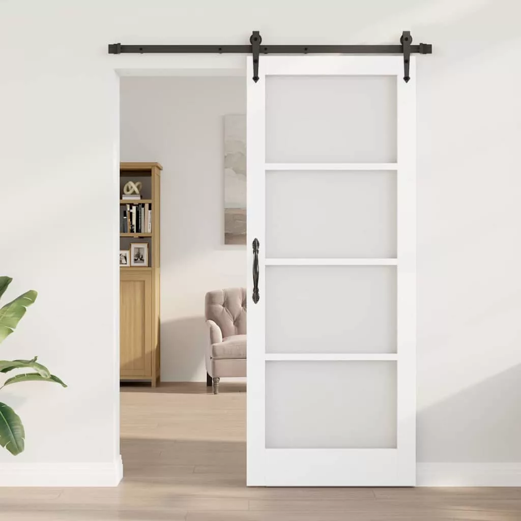 Csúszó ajtó ORKDAL Fehér 83 x 211 cm Tömör fenyőfa és üveg