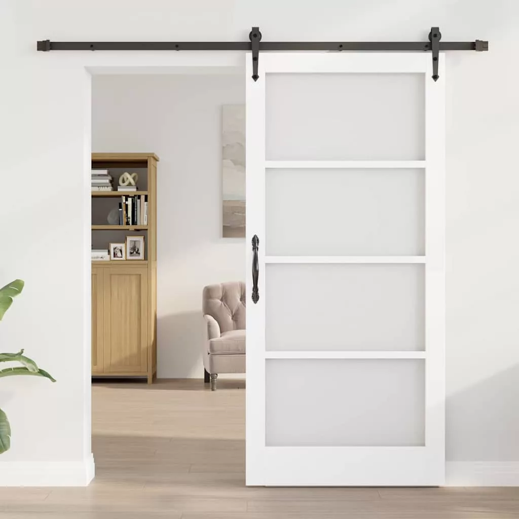 Csúszó ajtó ORKDAL Fehér 93 x 202 cm Tömör fenyőfa és üveg