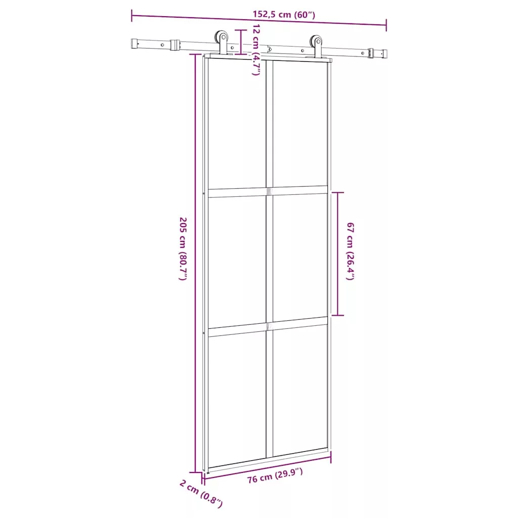 tolóajtó vasalatokkal 76x205 cm edzett üveg&Alumínium