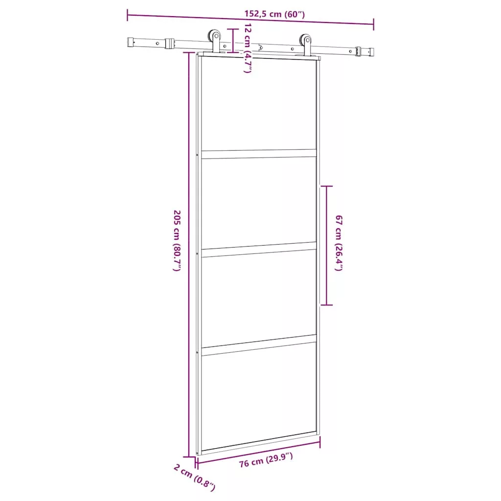 tolóajtó vasalatokkal 76x205 cm edzett üveg&Alumínium