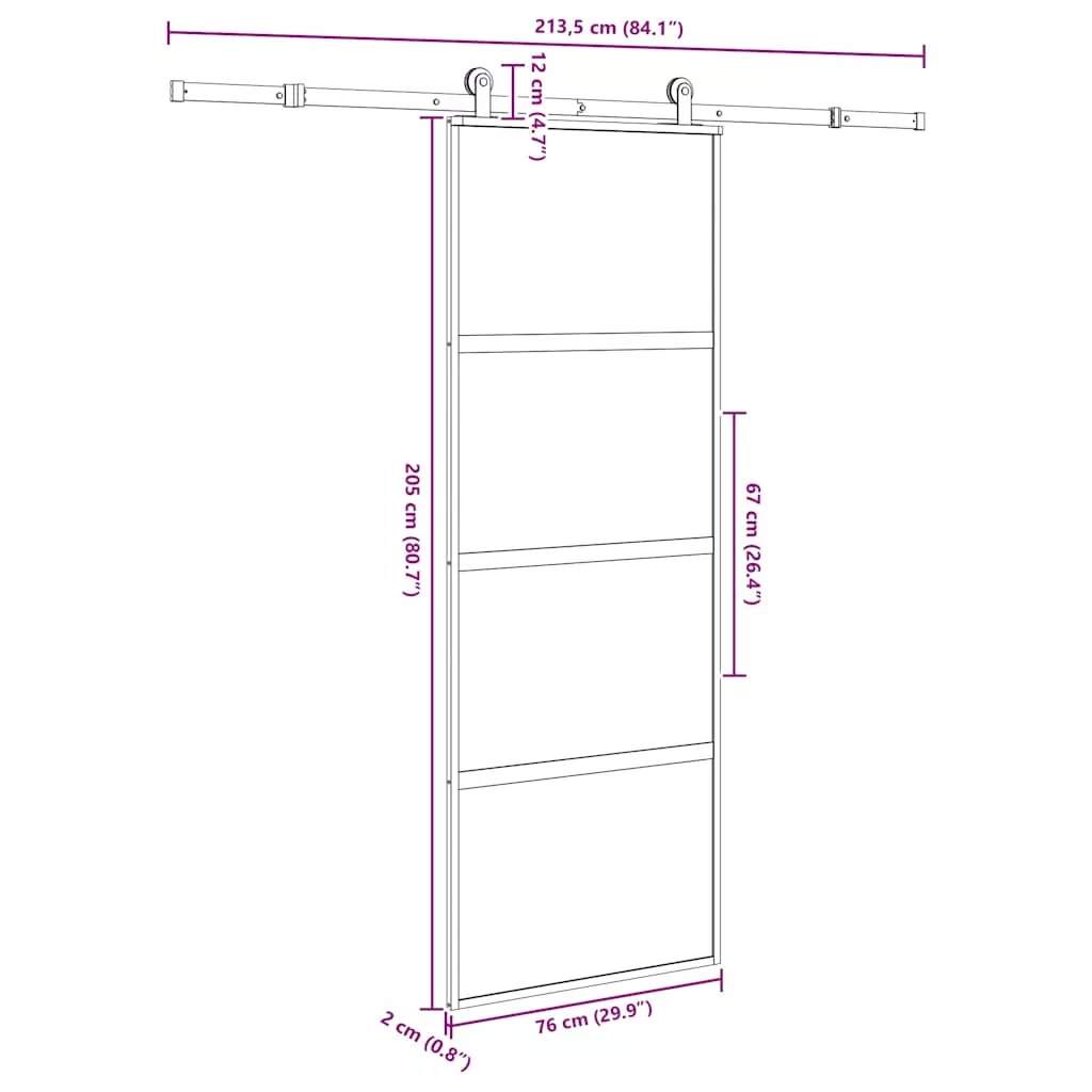 tolóajtó vasalatokkal 76x205 cm edzett üveg&Alumínium