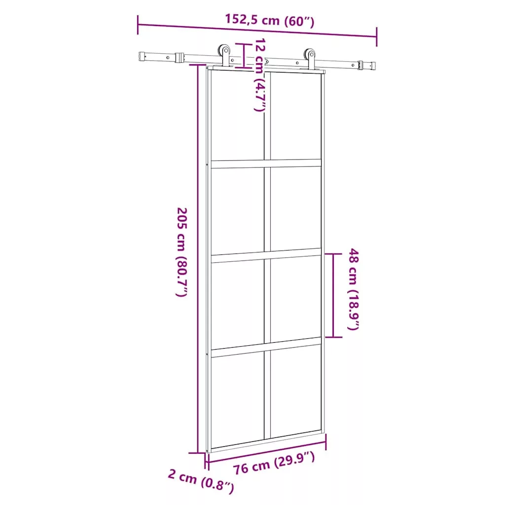 tolóajtó vasalatokkal 76x205 cm edzett üveg&Alumínium