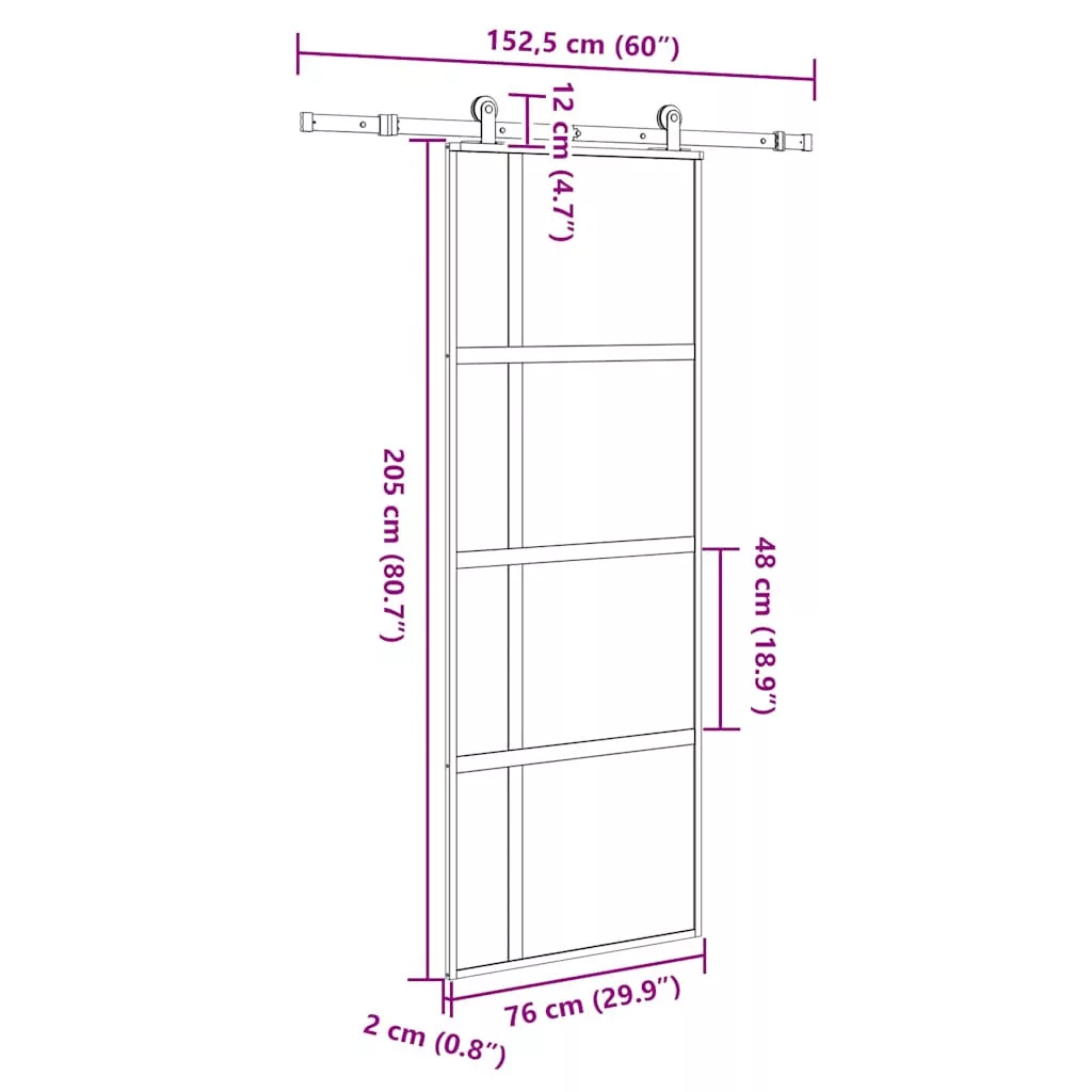 tolóajtó vasalatokkal 76x205 cm edzett üveg&Alumínium