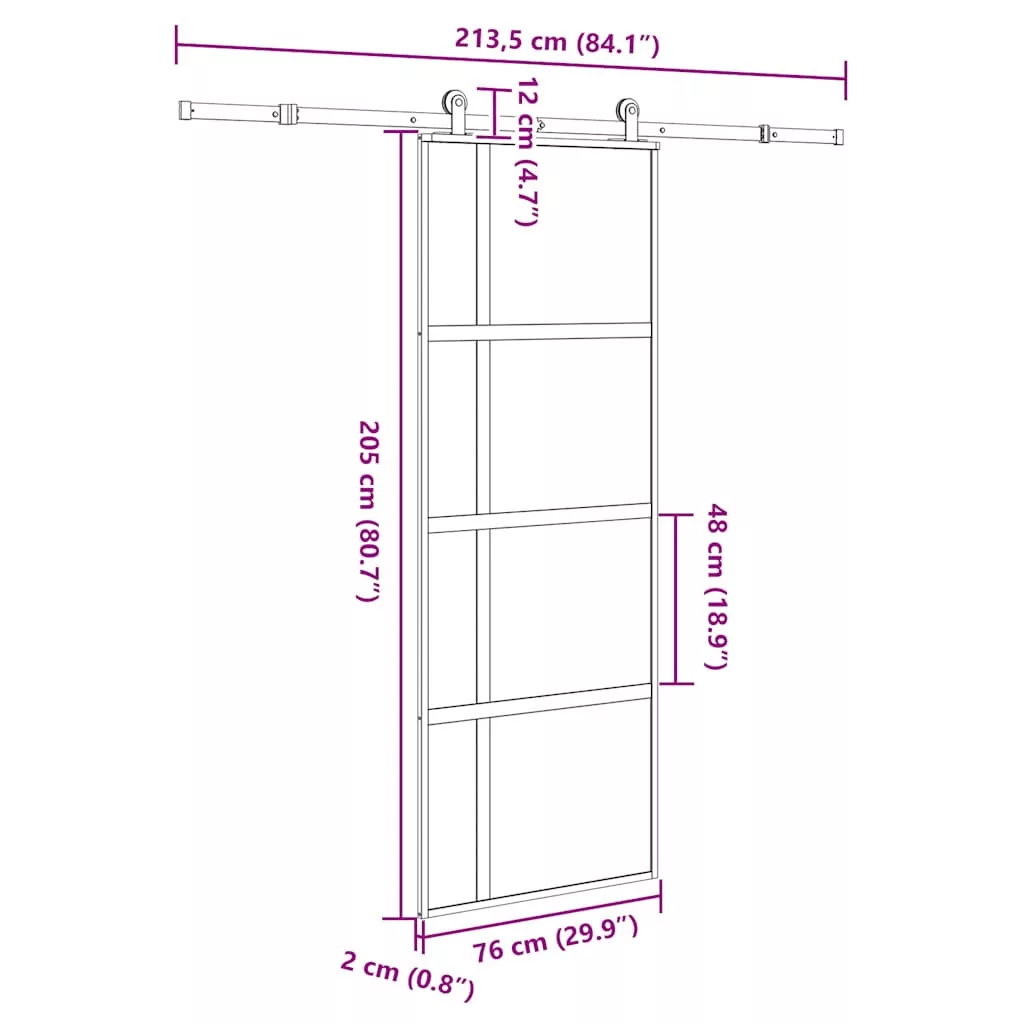 tolóajtó vasalatokkal 76x205 cm edzett üveg&Alumínium