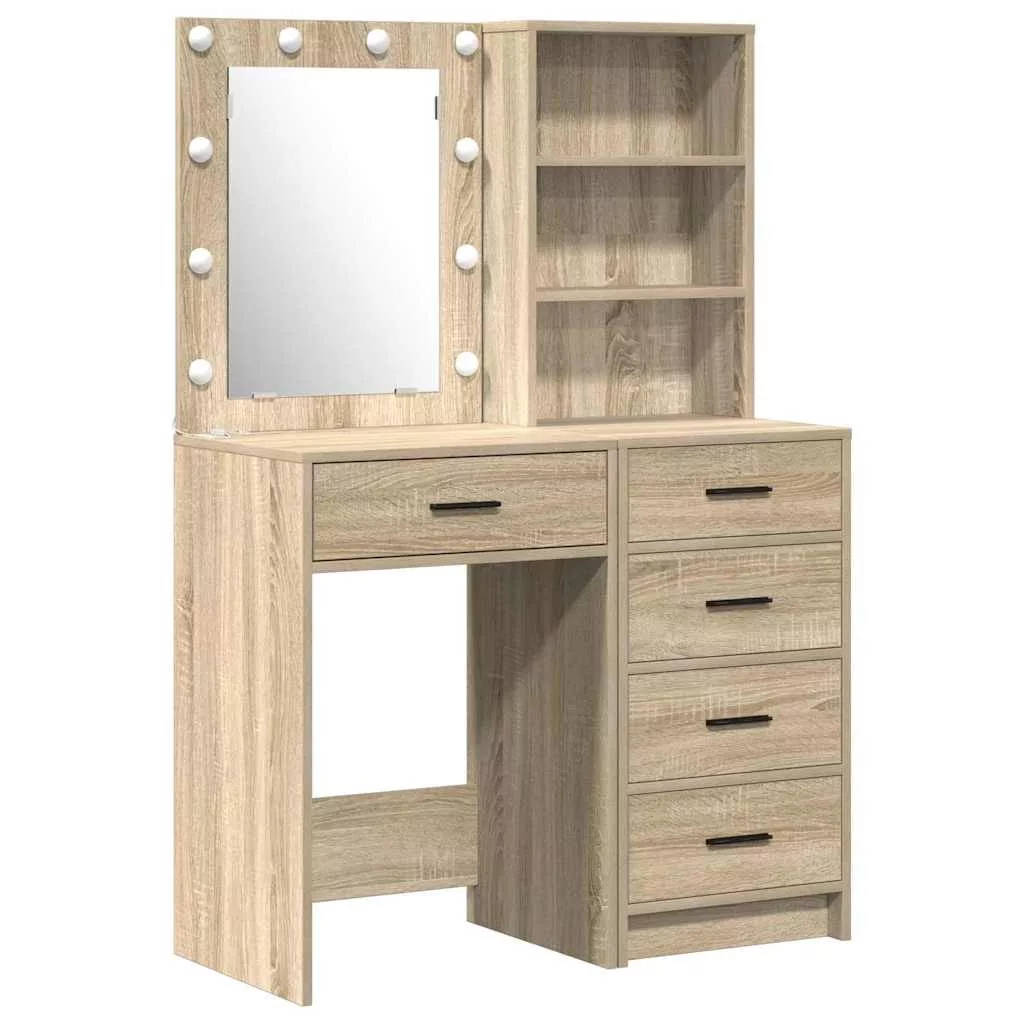 Ez a Modern Sminkasztal trendi érintést ad bármely hálószobának, ötvözi a szuper megjelenést a praktikus funkciókkal. Éles vonalai és minimális extra részletei miatt tökéletesen illeszkedik a modern dekorációhoz, miközben saját helyet biztosít a sminkednek és kiegészítőknek. Téglalap alakja friss nézőpontot ad a minimalista stílusnak, így bármilyen belső dizájnhoz passzol, az urbánus chic-től az egyszerű eleganciáig. Az erős, szerelt fa anyag tartós, de elég könnyű ahhoz, hogy ne zsúfoljon el kisebb helyeket. Jól tervezett, rengeteg tárolóhellyel rendelkezik, amit napi sminkelésre vagy készülődésre használhatsz. A rejtett LED világítás pedig segít a sminkelésre koncentrálni. Szerelt Fa Összetétel A sminkasztal főként kiváló minőségű szerelt fából készült, ami szép egyensúlyt teremt a megjelenés és az erő között. Ez az anyag nem torzul el vagy repedezik, így megőrzi a formáját és funkcióját, még ha sokat használod is. A sima felület elegáns és modern érzetet ad. Befoglalott Komponensek Rengeteget lehet tárolni a polcokon és fiókokban, amik szintén szerelt fából vannak, így rendezetten tarthatod a dolgaidat. A beépített LED világítás állítható fényt ad, így jól látsz mindent sminkelés közben. Innovatív Dizájn Elegáns téglalap alakjával és minimalista stílusával ez a sminkasztal annyira praktikus, mint divatos. Tiszta és rendben tartja a sminkfelszerelésedet, és megmutatja a kedvenc dolgaidat, igazán középponttá téve a szobádban. Megfelelő Használat A szobákba, különösen a hálószobákba tervezve, ez a sminkasztal tökéletes minden sminkes szükséglethez, segítve a napi készülődést. Szilárd felépítése garantálja a megbízhatóságot, így elfoglalt embereknek ideális, akik rendezett területet akarnak stílusos felkészüléshez. Karbantartási Tippek Egy kis törődés segít, hogy a sminkasztalod mindig szép maradjon; csak egy puha, száraz ruhával töröld le. Kerüld a vizet és a durva tisztítószereket, mert tönkretehetik a felületet. A rendszeres portörlés és a bútorszpráj használata segít megőrizni a csillogó, elegáns megjelenést évekig. Kérjük, vegye figyelembe, hogy csak tanúsított DC 5V bemenetet használjon. A magasabb feszültség túlmelegedést okozhat, és károsíthatja a készüléket, valamint túlhevülés és tűz kockázatát jelentheti. Ne csatlakoztassa ezt a terméket semmilyen más tápegységhez, mint amit a kézikönyvben, a névtáblán vagy a vidaXL kifejezetten ajánlott. Ezt a készüléket nem használhatják 14 évesnél fiatalabb gyermekek, valamint csökkent fizikai, érzékszervi vagy mentális képességekkel rendelkező személyek, vagy elektronikai eszközök használatában tapasztalatlan vagy tudás nélküli személyek. Az elektromosság veszélyes. A nem megfelelő telepítés, használat vagy módosítás (egyedi alkatrészek cseréje) a készülék károsodásához vezethet, áramütést és veszélyt okozva a felhasználónak. Ne működtesse ezt a terméket robbanásveszélyes atmoszférában, például gyúlékony folyadékok, gázok és por jelenlétében, vagy 50 Celsius foknál magasabb hőmérsékleten. Ne kapcsolja be a terméket, ha a csatlakozó kábel vagy tápegység láthatóan sérült. Ha a lámpa külső hajlékony kábele vagy vezetékje sérült, azt kizárólag a gyártó vagy annak szervizügynöke, illetve hasonló képesítéssel rendelkező személy cserélheti ki, hogy elkerülje a veszélyt. A telepítés és karbantartás alatt kapcsolja ki az áramot. Győződjön meg arról, hogy a fényforrások lehűltek. Ennek a lámpatestnek a fényforrása nem cserélhető; ha a fényforrás elérte élettartamának végét, az egész lámpát ki kell cserélni. Csak belső használatra, ne használja kültéren.