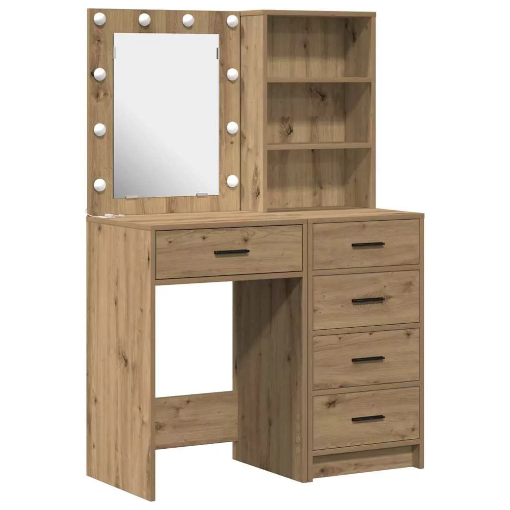 Ez a Modern Sminkasztal trendi érintést ad bármely hálószobának, ötvözi a szuper megjelenést a praktikus funkciókkal. Éles vonalai és minimális extra részletei miatt tökéletesen illeszkedik a modern dekorációhoz, miközben saját helyet biztosít a sminkednek és kiegészítőknek. Téglalap alakja friss nézőpontot ad a minimalista stílusnak, így bármilyen belső dizájnhoz passzol, az urbánus chic-től az egyszerű eleganciáig. Az erős, szerelt fa anyag tartós, de elég könnyű ahhoz, hogy ne zsúfoljon el kisebb helyeket. Jól tervezett, rengeteg tárolóhellyel rendelkezik, amit napi sminkelésre vagy készülődésre használhatsz. A rejtett LED világítás pedig segít a sminkelésre koncentrálni. Szerelt Fa Összetétel A sminkasztal főként kiváló minőségű szerelt fából készült, ami szép egyensúlyt teremt a megjelenés és az erő között. Ez az anyag nem torzul el vagy repedezik, így megőrzi a formáját és funkcióját, még ha sokat használod is. A sima felület elegáns és modern érzetet ad. Befoglalott Komponensek Rengeteget lehet tárolni a polcokon és fiókokban, amik szintén szerelt fából vannak, így rendezetten tarthatod a dolgaidat. A beépített LED világítás állítható fényt ad, így jól látsz mindent sminkelés közben. Innovatív Dizájn Elegáns téglalap alakjával és minimalista stílusával ez a sminkasztal annyira praktikus, mint divatos. Tiszta és rendben tartja a sminkfelszerelésedet, és megmutatja a kedvenc dolgaidat, igazán középponttá téve a szobádban. Megfelelő Használat A szobákba, különösen a hálószobákba tervezve, ez a sminkasztal tökéletes minden sminkes szükséglethez, segítve a napi készülődést. Szilárd felépítése garantálja a megbízhatóságot, így elfoglalt embereknek ideális, akik rendezett területet akarnak stílusos felkészüléshez. Karbantartási Tippek Egy kis törődés segít, hogy a sminkasztalod mindig szép maradjon; csak egy puha, száraz ruhával töröld le. Kerüld a vizet és a durva tisztítószereket, mert tönkretehetik a felületet. A rendszeres portörlés és a bútorszpráj használata segít megőrizni a csillogó, elegáns megjelenést évekig. Kérjük, vegye figyelembe, hogy csak tanúsított DC 5V bemenetet használjon. A magasabb feszültség túlmelegedést okozhat, és károsíthatja a készüléket, valamint túlhevülés és tűz kockázatát jelentheti. Ne csatlakoztassa ezt a terméket semmilyen más tápegységhez, mint amit a kézikönyvben, a névtáblán vagy a vidaXL kifejezetten ajánlott. Ezt a készüléket nem használhatják 14 évesnél fiatalabb gyermekek, valamint csökkent fizikai, érzékszervi vagy mentális képességekkel rendelkező személyek, vagy elektronikai eszközök használatában tapasztalatlan vagy tudás nélküli személyek. Az elektromosság veszélyes. A nem megfelelő telepítés, használat vagy módosítás (egyedi alkatrészek cseréje) a készülék károsodásához vezethet, áramütést és veszélyt okozva a felhasználónak. Ne működtesse ezt a terméket robbanásveszélyes atmoszférában, például gyúlékony folyadékok, gázok és por jelenlétében, vagy 50 Celsius foknál magasabb hőmérsékleten. Ne kapcsolja be a terméket, ha a csatlakozó kábel vagy tápegység láthatóan sérült. Ha a lámpa külső hajlékony kábele vagy vezetékje sérült, azt kizárólag a gyártó vagy annak szervizügynöke, illetve hasonló képesítéssel rendelkező személy cserélheti ki, hogy elkerülje a veszélyt. A telepítés és karbantartás alatt kapcsolja ki az áramot. Győződjön meg arról, hogy a fényforrások lehűltek. Ennek a lámpatestnek a fényforrása nem cserélhető; ha a fényforrás elérte élettartamának végét, az egész lámpát ki kell cserélni. Csak belső használatra, ne használja kültéren.