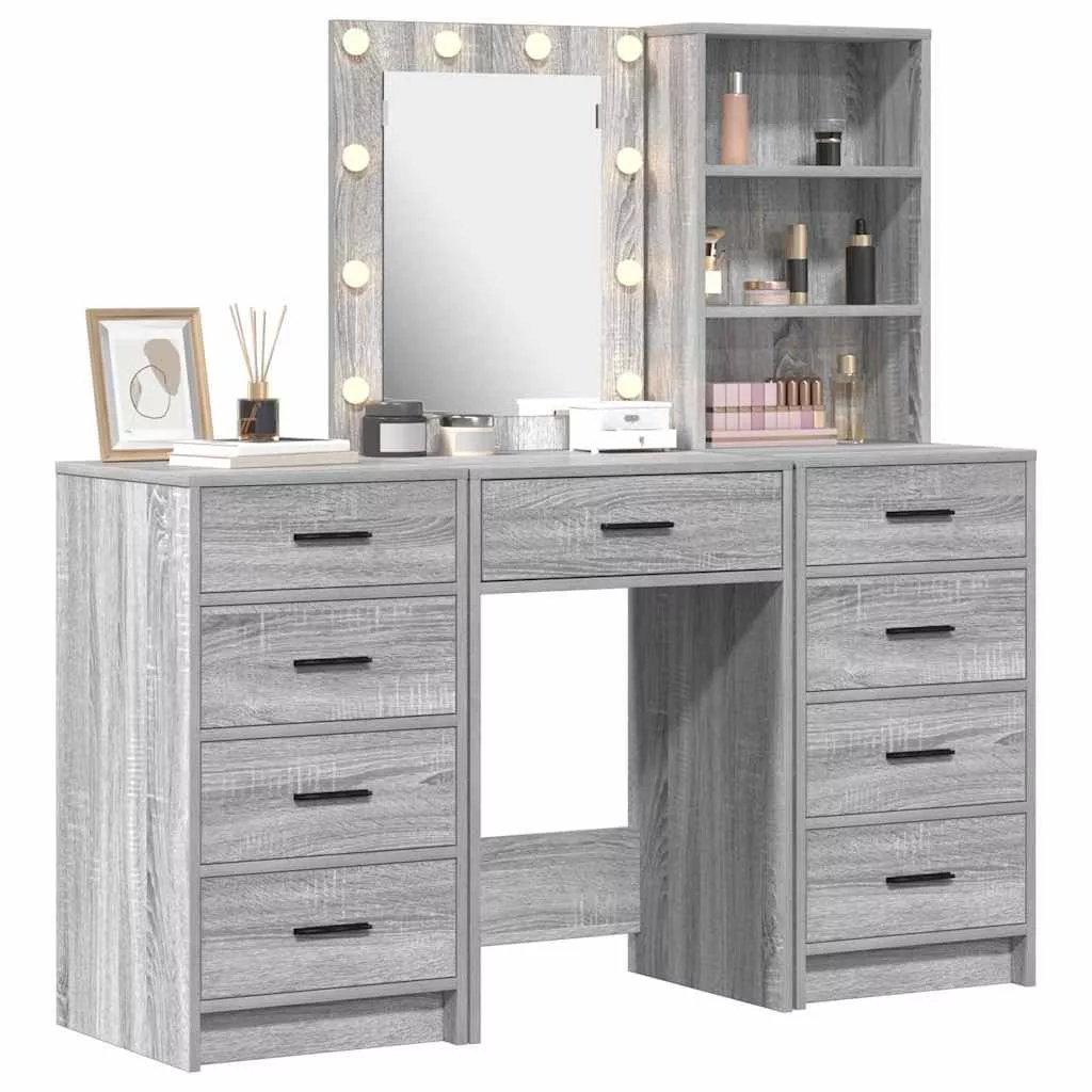 Öltözködőasztal fiókkal 3 pcs Szürke 40 x 41 x 135 cm Faanyag