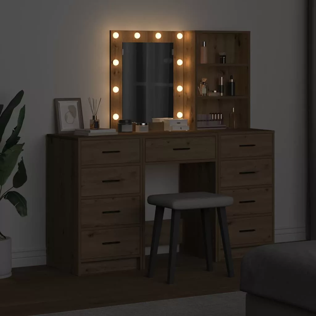 Ez a stílusos Modern Sminkasztal a letisztult vonalak és a szilárd funkcionalitás jegyében készült, így nagyszerű választás modern hálószobákhoz. Egyszerű téglalap formája és minimalista dizájnja könnyen illeszkedik bármilyen stílushoz, így remek kiegészítő bármelyik helyiségbe. Tökéletes a rendezett élethez, ez a darab egyensúlyt hoz a forma és funkció között, lehetővé téve, hogy saját kis menedékedet alakítsd ki a térben. Mérnöki Fából Készült Ezt a sminkasztalt magas minőségű mérnöki fából csinálták, szóval masszív és megbízható, garantálva a hosszú élettartamot. A sima felület remekül néz ki és ellenáll a mindennapi használatnak. Hatékony LED Világítás Rugalmas LED szalagokkal ez a sminkasztal éppen a megfelelő fényt biztosít, ötvözve a praktikusságot és a stílust. Ideális részletes sminkeléshez, amivel a sminkasztal még jobban használható. Praktikus Tárolási Megoldások Polcokkal és egy fiókkal bőséges hely áll rendelkezésre a kozmetikumok és szükséges dolgok rendben tartására. Ez a dizájn tökéletes azoknak, akik tiszta hálószobát szeretnének. Modern Hálószobákhoz Igazítva Sugárzó vonalai és praktikus jellemzői miatt jól passzol a kortárs terekhez. Legyen az az ágyad mellett vagy egy gardróbban, remekül harmonizál a meglévő bútorokkal. Karbantartás és Összeszerelés Az asztal három részben érkezik, és két ember kell az összeszereléshez. Hogy hosszú távon is megőrizzük állapotát, csak töröld le rendszeresen egy száraz ronggyal. Kérjük, vegye figyelembe, hogy csak tanúsított DC 5V bemenetet használjon. A magasabb feszültség túlmelegedést okozhat, és károsíthatja a készüléket, valamint túlhevülés és tűz kockázatát jelentheti. Ne csatlakoztassa ezt a terméket semmilyen más tápegységhez, mint amit a kézikönyvben, a névtáblán vagy a vidaXL kifejezetten ajánlott. Ezt a készüléket nem használhatják 14 évesnél fiatalabb gyermekek, valamint csökkent fizikai, érzékszervi vagy mentális képességekkel rendelkező személyek, vagy elektronikai eszközök használatában tapasztalatlan vagy tudás nélküli személyek. Az elektromosság veszélyes. A nem megfelelő telepítés, használat vagy módosítás (egyedi alkatrészek cseréje) a készülék károsodásához vezethet, áramütést és veszélyt okozva a felhasználónak. Ne működtesse ezt a terméket robbanásveszélyes atmoszférában, például gyúlékony folyadékok, gázok és por jelenlétében, vagy 50 Celsius foknál magasabb hőmérsékleten. Ne kapcsolja be a terméket, ha a csatlakozó kábel vagy tápegység láthatóan sérült. Ha a lámpa külső hajlékony kábele vagy vezetékje sérült, azt kizárólag a gyártó vagy annak szervizügynöke, illetve hasonló képesítéssel rendelkező személy cserélheti ki, hogy elkerülje a veszélyt. A telepítés és karbantartás alatt kapcsolja ki az áramot. Győződjön meg arról, hogy a fényforrások lehűltek. Ennek a lámpatestnek a fényforrása nem cserélhető; ha a fényforrás elérte élettartamának végét, az egész lámpát ki kell cserélni. Csak belső használatra, ne használja kültéren.