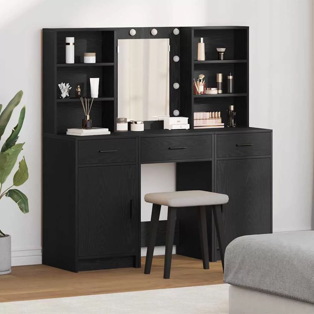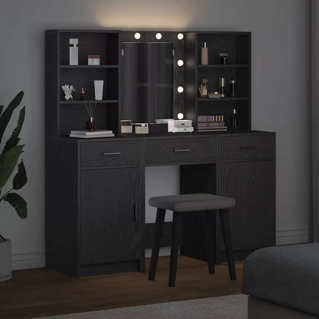 LED-es öltözködő asztal szett 3 pcs Fekete tölgy Faanyag