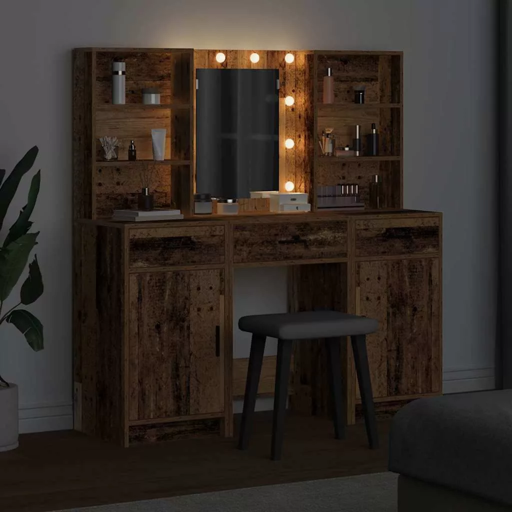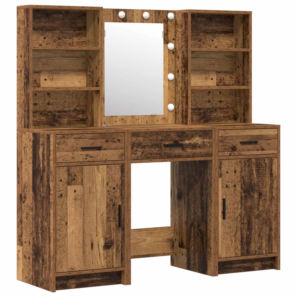 LED-es öltözködő asztal szett fiókkal 3 pcs Öreg fa Faanyag