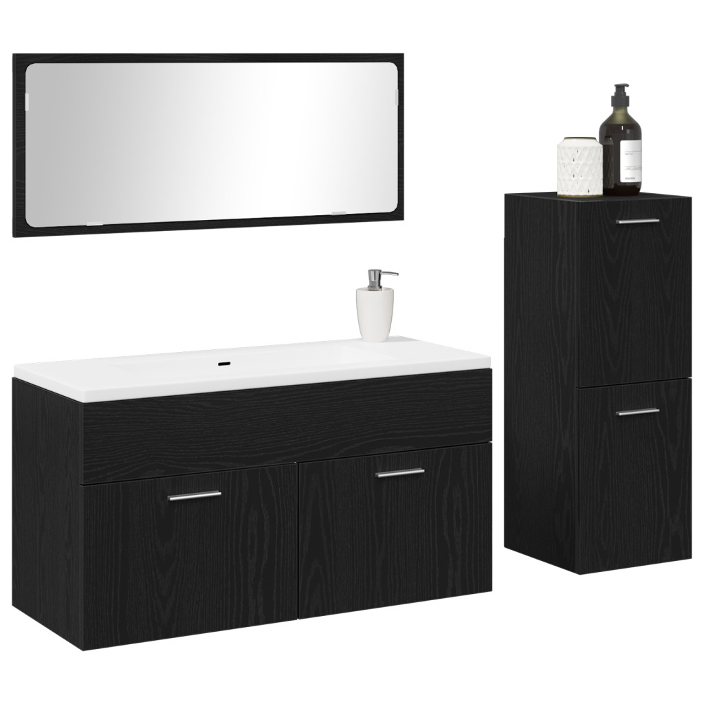 3 részes fürdőszoba bútor szett fekete tölgy mérnöki fa