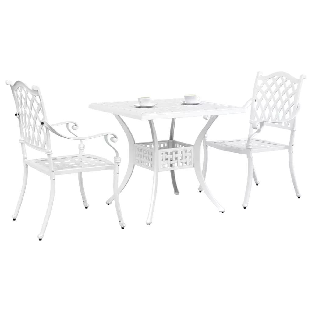 Kerti asztalszett 3 pcs Fehér Öntött alumínium