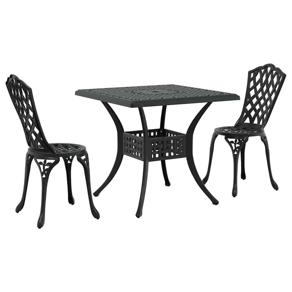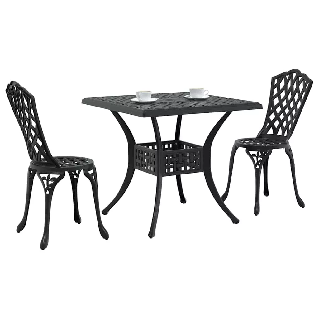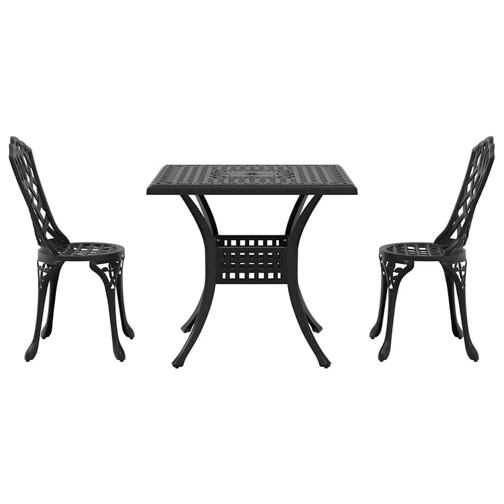Kerti asztalszett 3 pcs Fekete Öntött alumínium