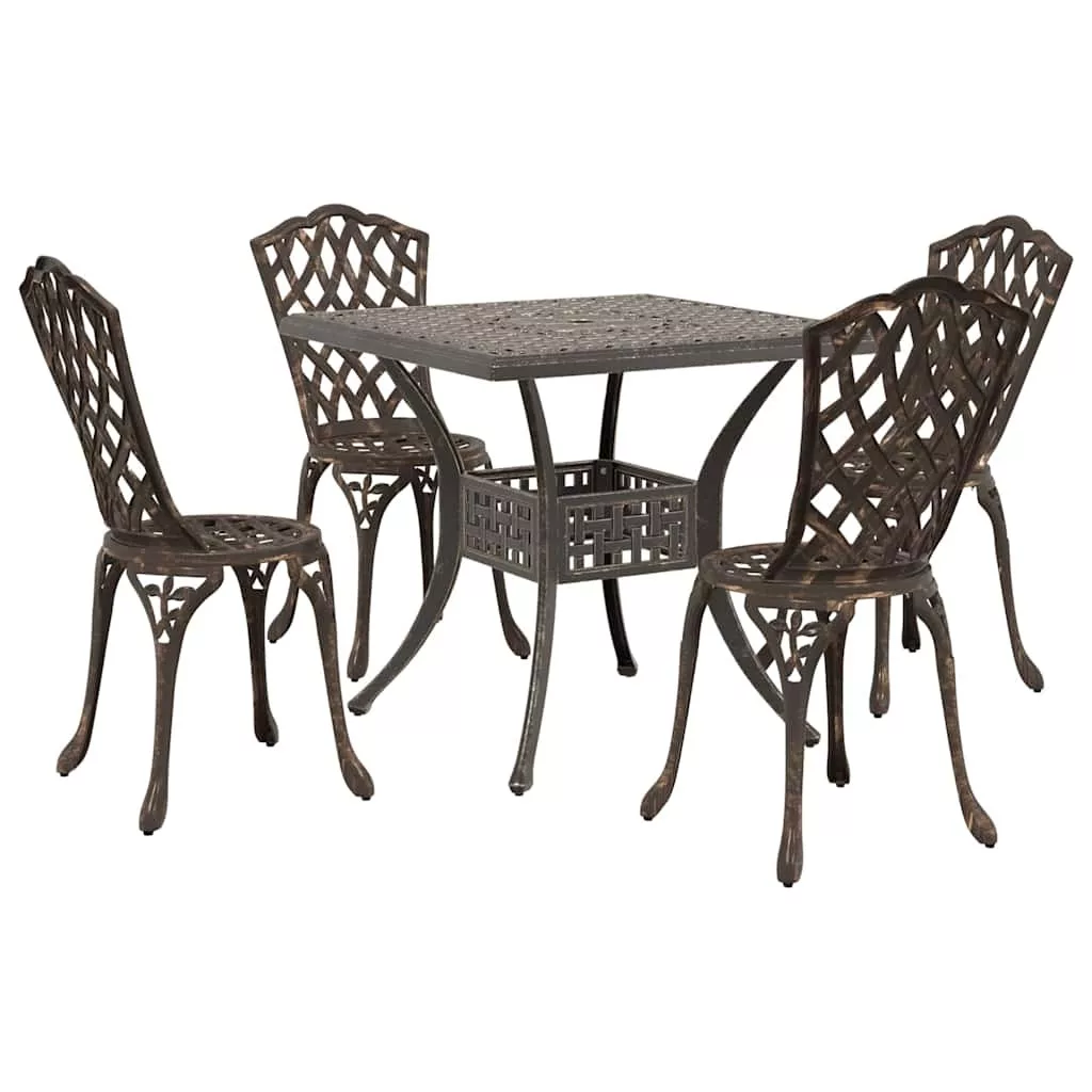 Kerti asztalszett 5 pcs Bronz Öntött alumínium
