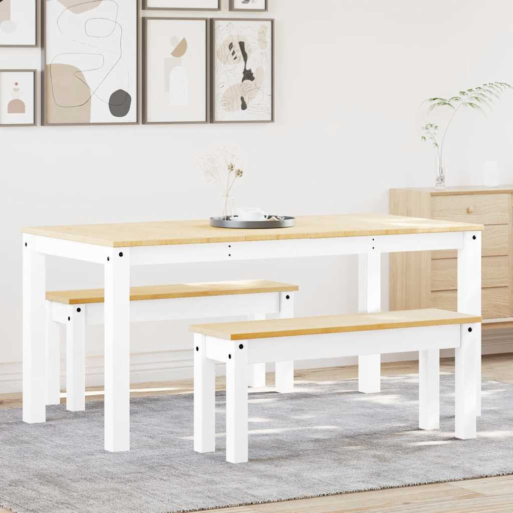 PANAMA 3 részes fehér tömör fenyőfa étkezőgarnitúra