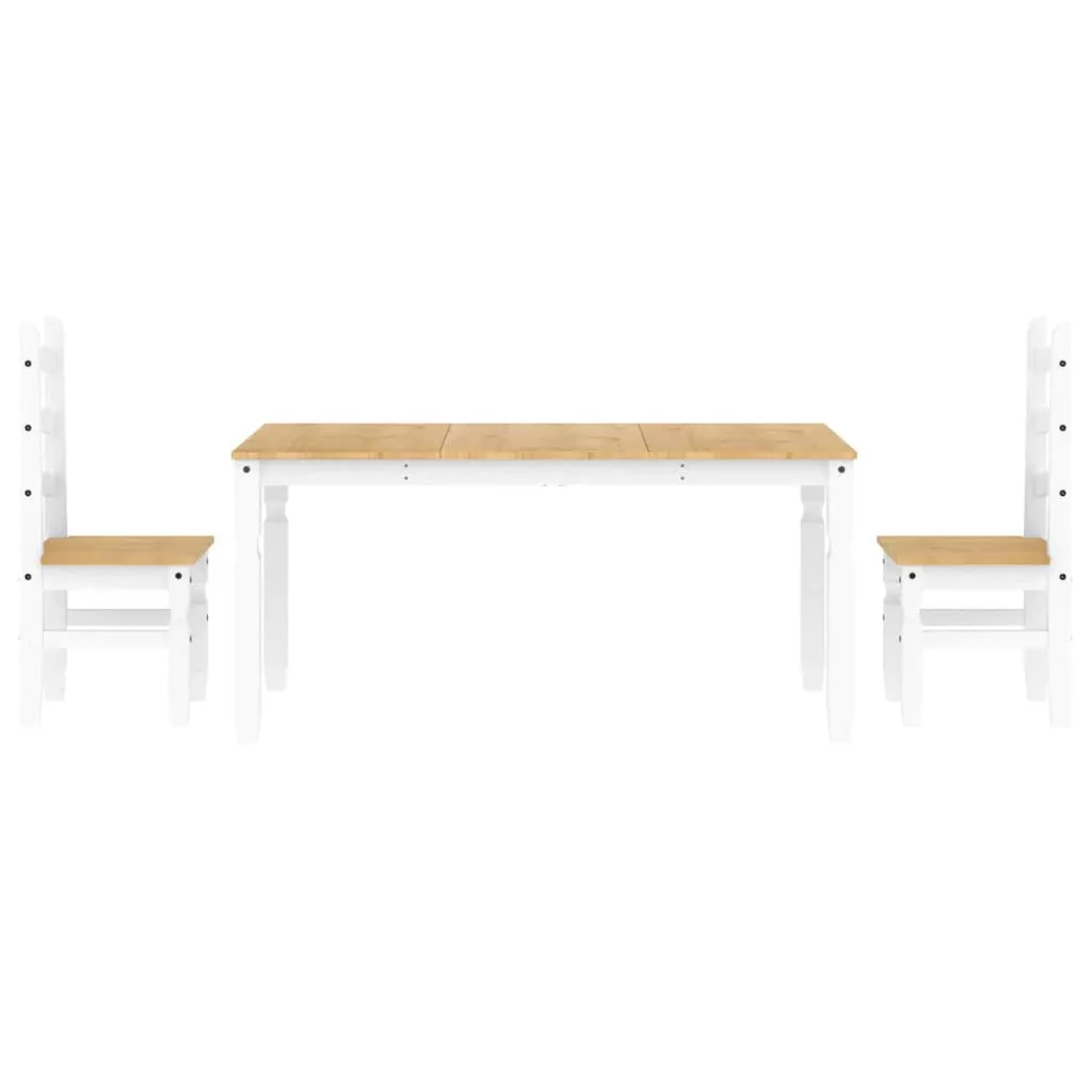 Panama 3 részes fehér tömör fenyőfa étkezőgarnitúra
