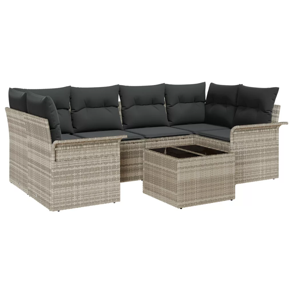 7 Darabos Kerti Kanapé Szett Párnákkal Világosszürke Poli Rattan