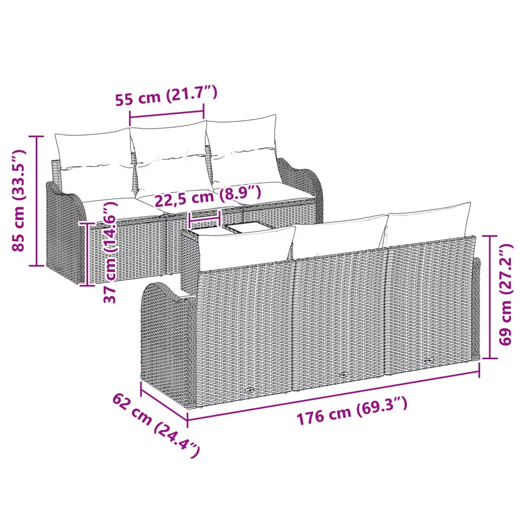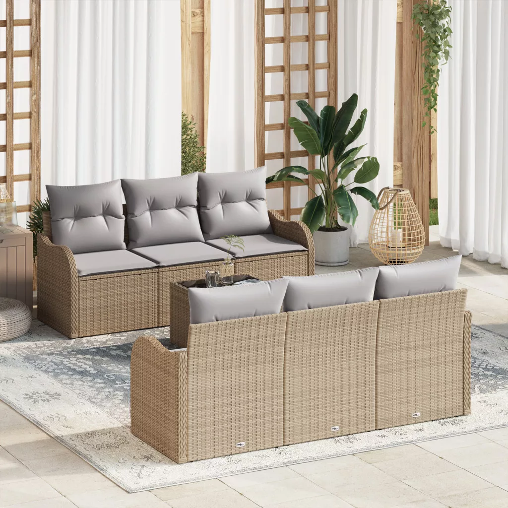 7 darabos Kerti Kanapé szett párnákkal Bézs Polirattan