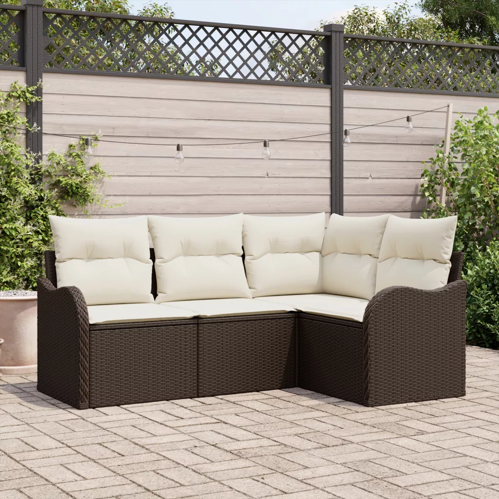 4 Darabos Kert Kanapé Szett Párnákkal Barna Poli Rattan