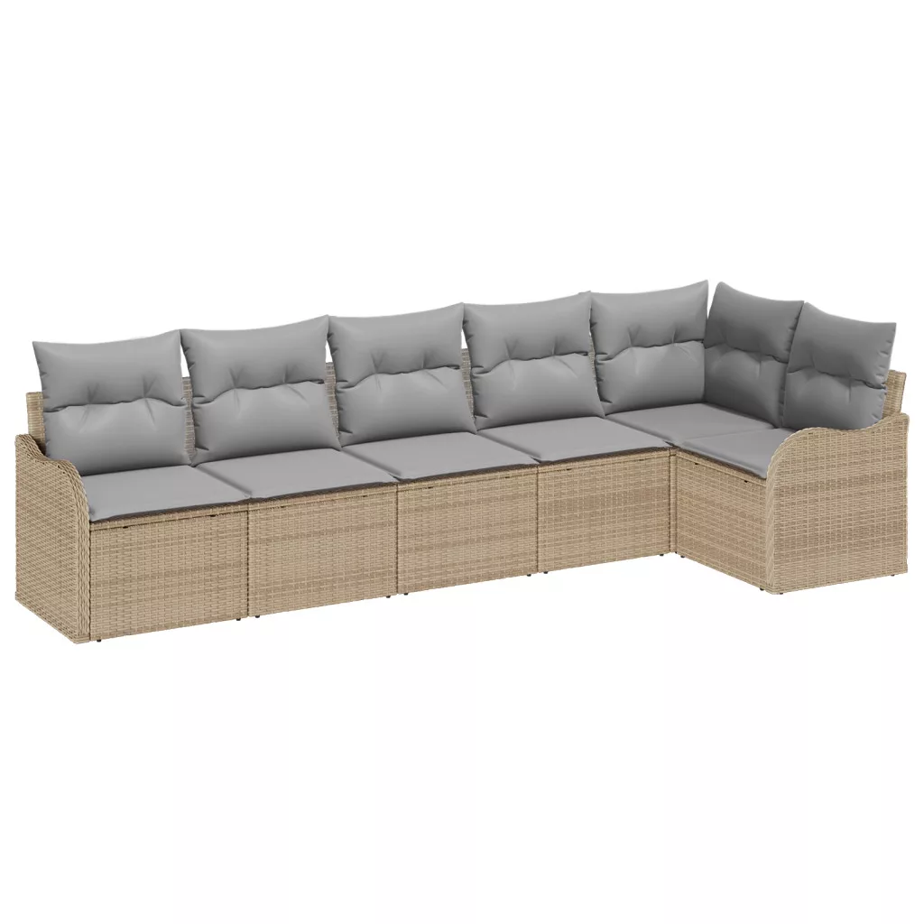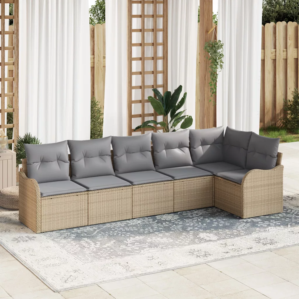 6 részes Kerti Kanapé Szett Párnákkal Bézs Poli Rattan