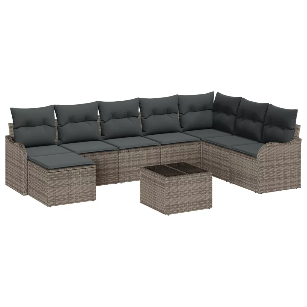 8 részes kerti kanapé szett párnákkal fekete poli rattan