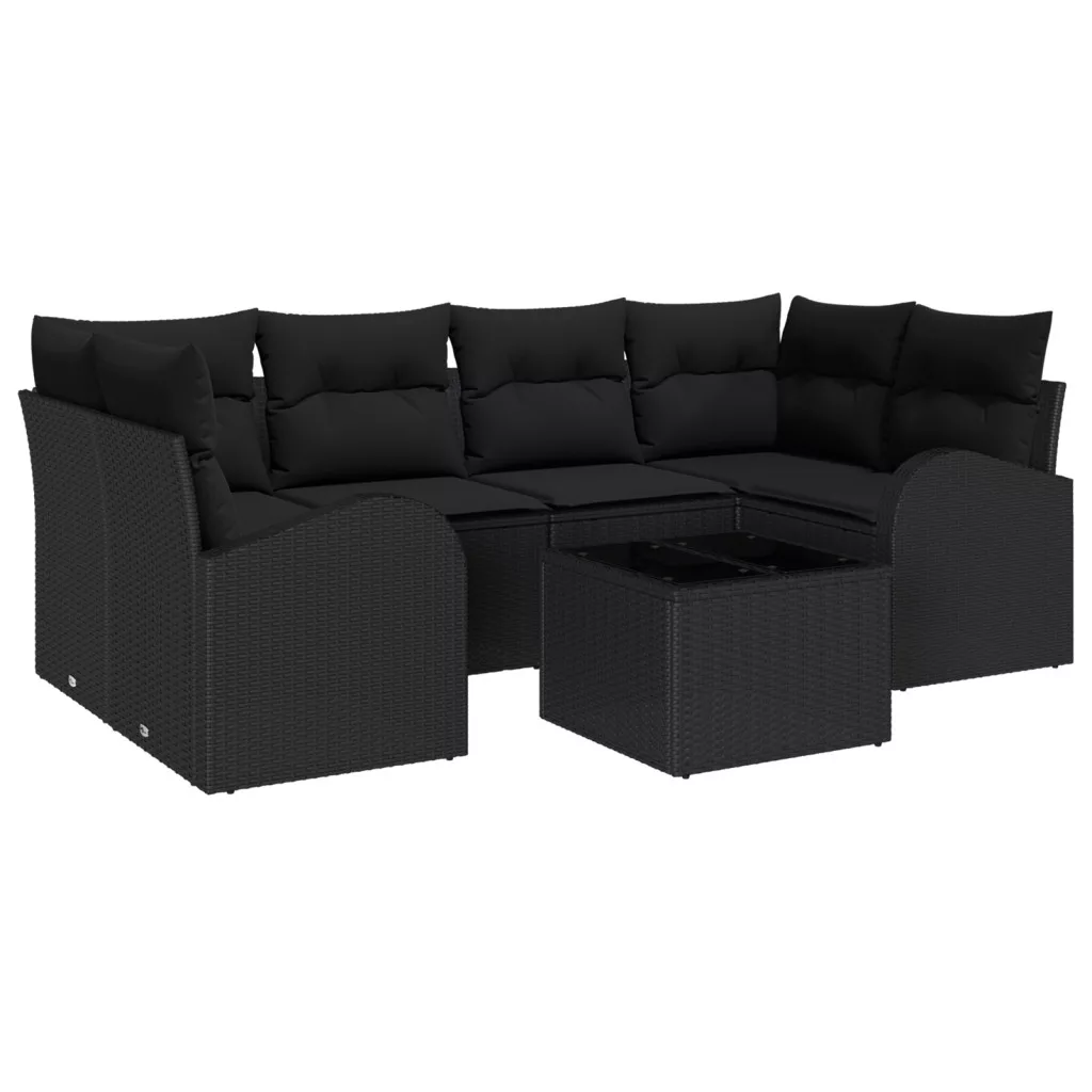 7 darabos kerti kanapé szett párnákkal fekete poli rattan