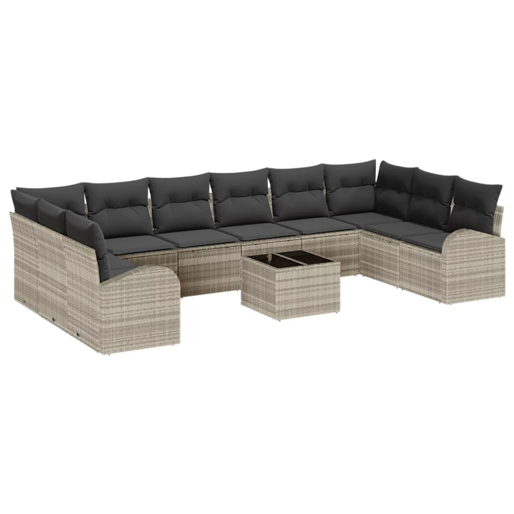 11 darabos kerti kanapé szett párnákkal szürke poli rattanban
