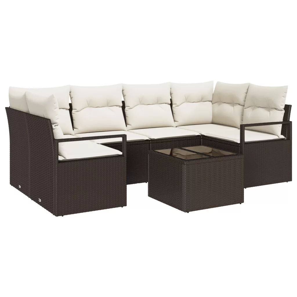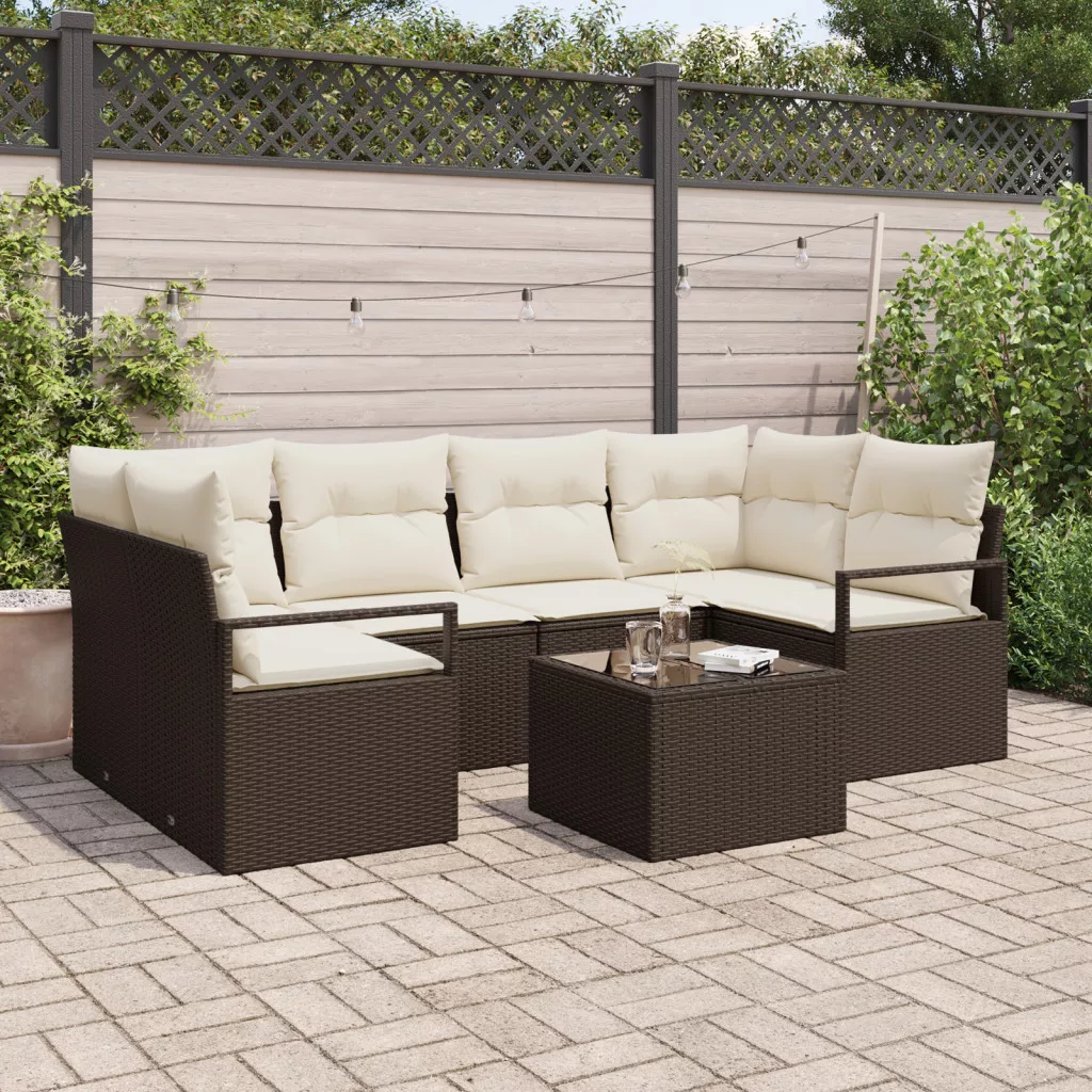 7 db-os Kerti Kanapé Szett Párnákkal Barna Polirattan