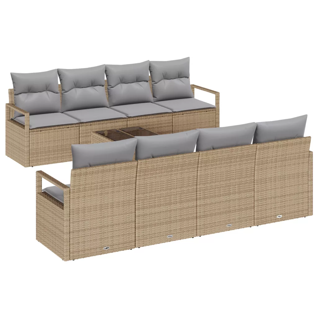 9 darabos kerti kanapé szett párnákkal Bézs Poli Rattan