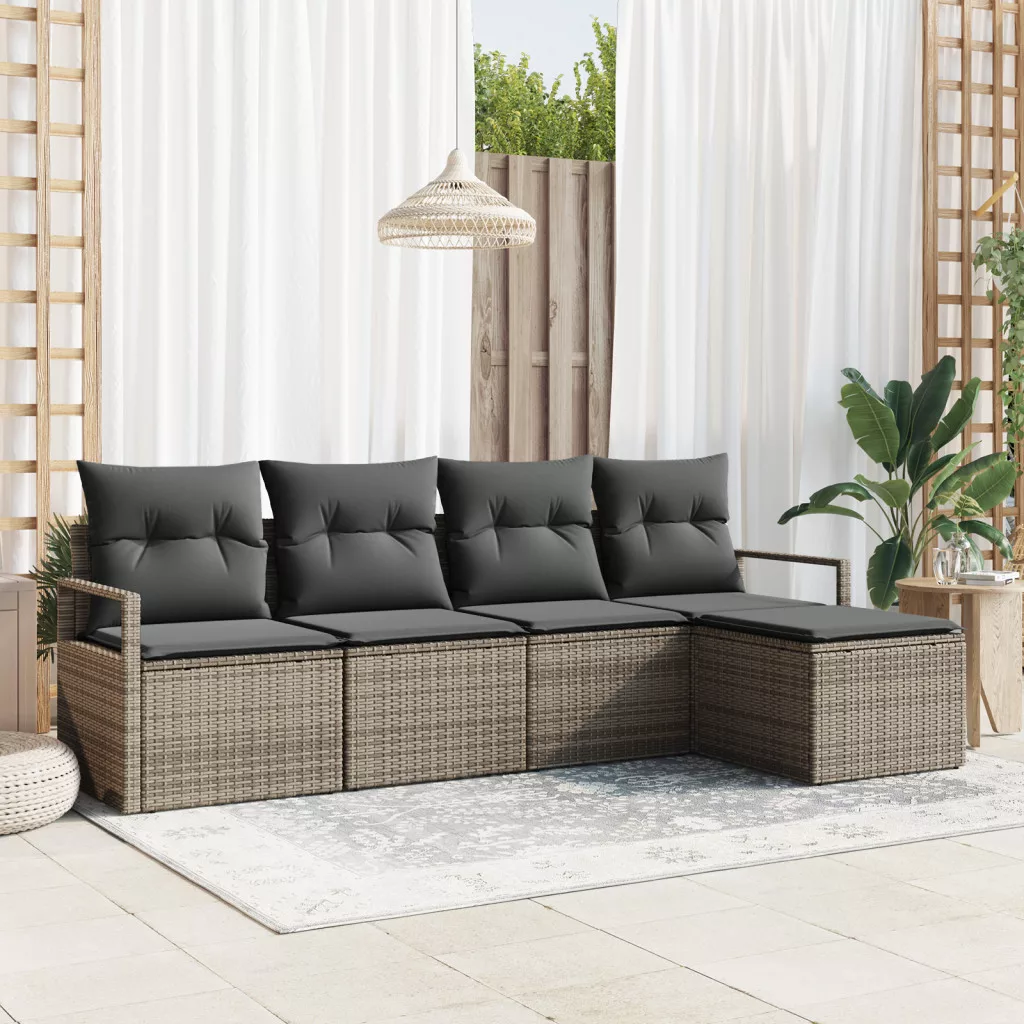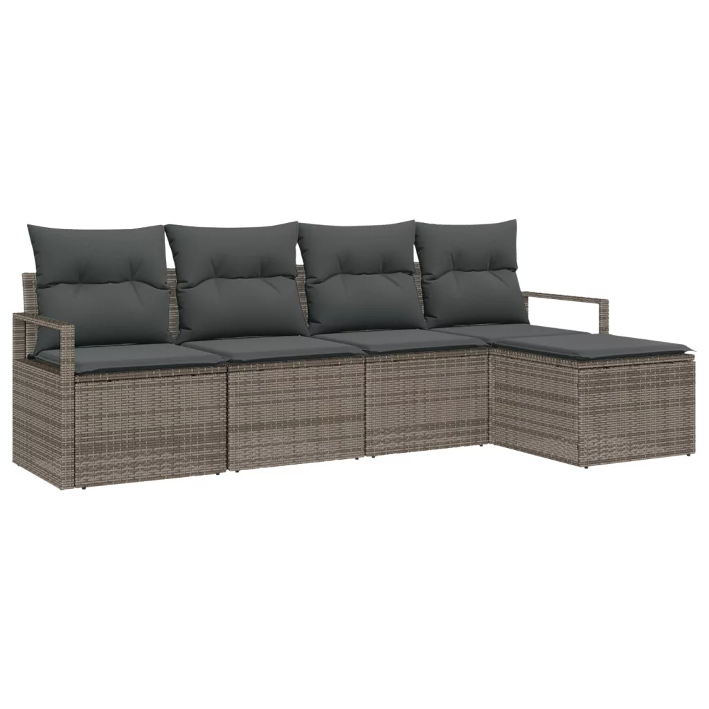 5 darabos kerti kanapé szett párnákkal szürke poli rattan