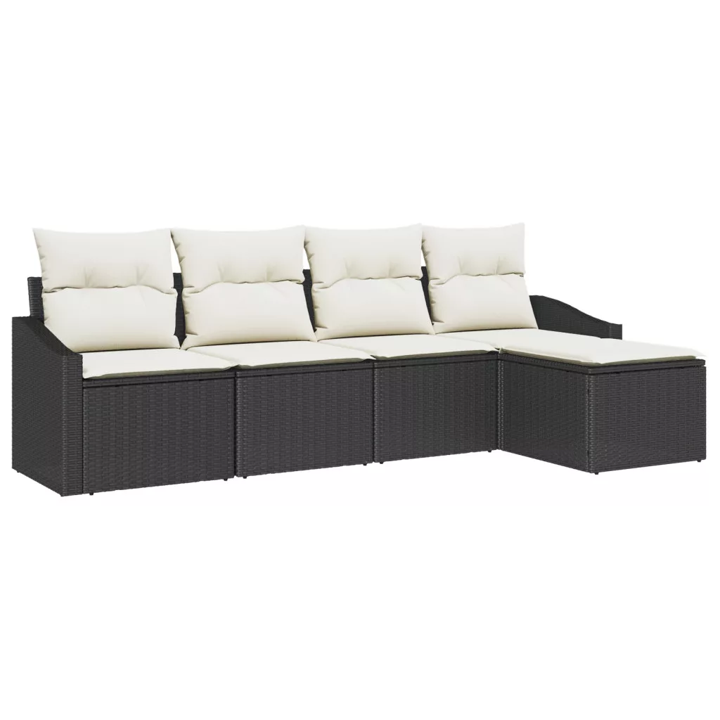5 Részes Kerti Kanapé Szett Párnákkal Barna Poli Rattan