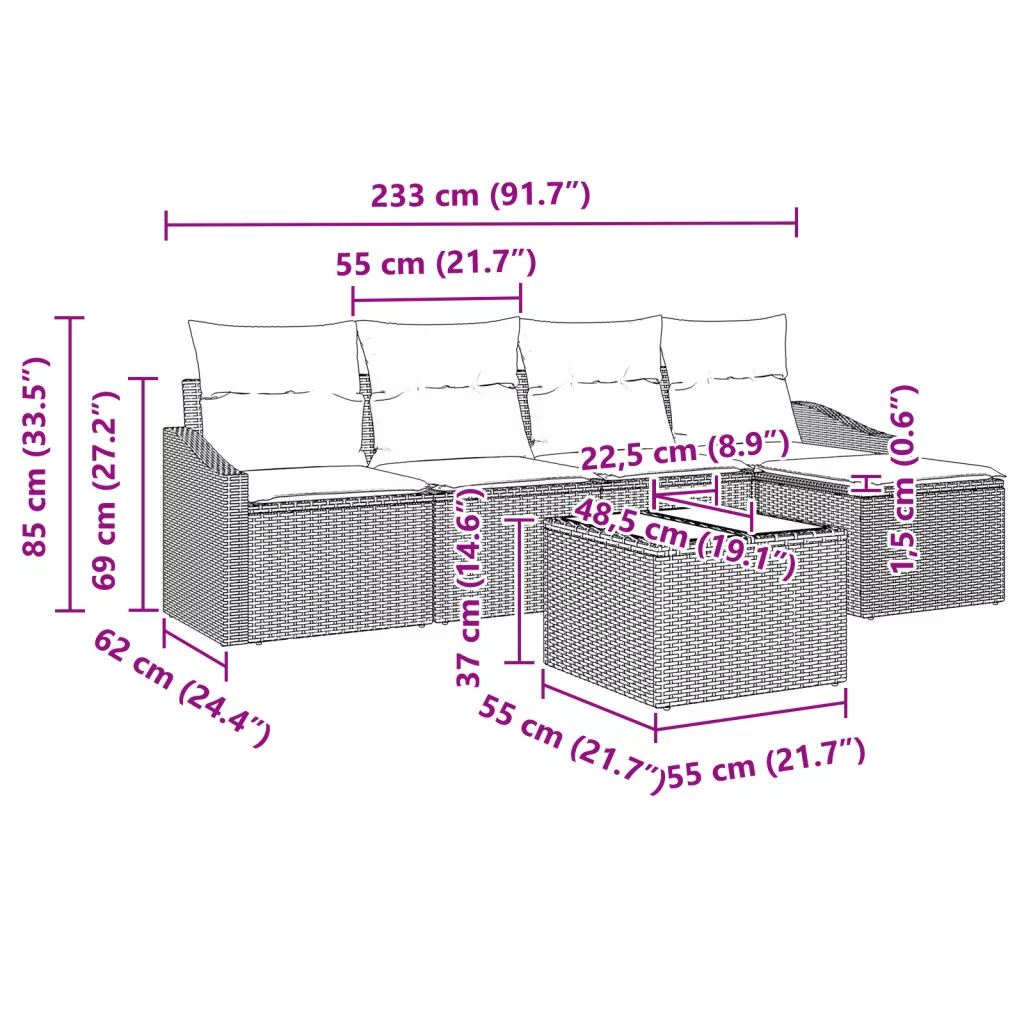 Ez a barna poli rattan kerti kanapé szett a kényelemről és a stílusról szól, nagyszerű kiegészítője a kültéri területednek. A kényelmes krém párnák nem csupán pihenést kínálnak, hanem trendi érintést is hoznak a kerted dekorációjába. Kényelem: A párnák jól párnázottak, így hosszan élvezheted a pihenést barátokkal vagy családoddal. Rugalmas dizájn: Tökéletes kültéren, a moduláris szekció remekül illeszkedik a teraszokra vagy kertekbe, könnyen igazítható a beállításodhoz. Tartós váz: A kiváló minőségű acél és időjárásálló poli rattan anyaggal ellátott kanapé jól bírja az időjárást, közben pedig megőrzi szép megjelenését. Könnyű karbantartás: A levehető párnahuzatoknak köszönhetően a tisztítás egyszerű, és a kanapét mindig frissen tarthatod. Terjedelmes elrendezés: Kényelmesen elfér 5 felnőtt, így ideális társasági programokhoz vagy családi összejövetelekhez.