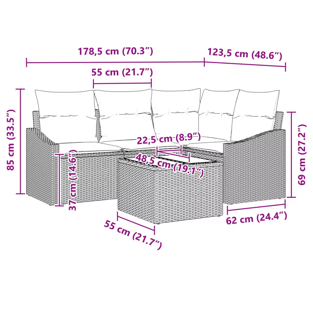 Ez a kültéri szekcionált kanapé szett a kényelmet és a stílust hozza el, puha szürke párnákkal és trendi dizájnnal. Tökéletes balkonokra és kertekbe, kényelmes ülőhelyet teremt napfényes összejövetelekhez. Tartós felépítés: UV-álló természetes rattannal megépítve, ez a kerti kanapé szett készül, hogy tartós legyen, megőrzi a szépségét és a funkcióját. Kényelmes párnák: A szett puha szürke párnákat tartalmaz, amelyek cipzárral rendelkeznek, így kombinálva a kényelmet a gondtalansággal, hívnak meg, hogy pihenj stílusosan a szabadban. Moduláris dizájn: Ez a rugalmas kanapé elrendezés lehetővé teszi, hogy személyre szabhasd a kialakítást, tökéletes a kültéri terekhez, akár barátokat hívsz, akár egyedül töltesz el egy nyugodt estét. Elegáns stílus: A modern dizájn egy csepp kifinomultságot ad a kerted hangulatához, barátságos helyet teremtve a családnak és a barátoknak. Egyszerű összeszerelés: Az egyszerű utasításokkal könnyedén összeszerelheted ezt a kanapé szettet, így hamar elérheted a kültéri oázisodat.