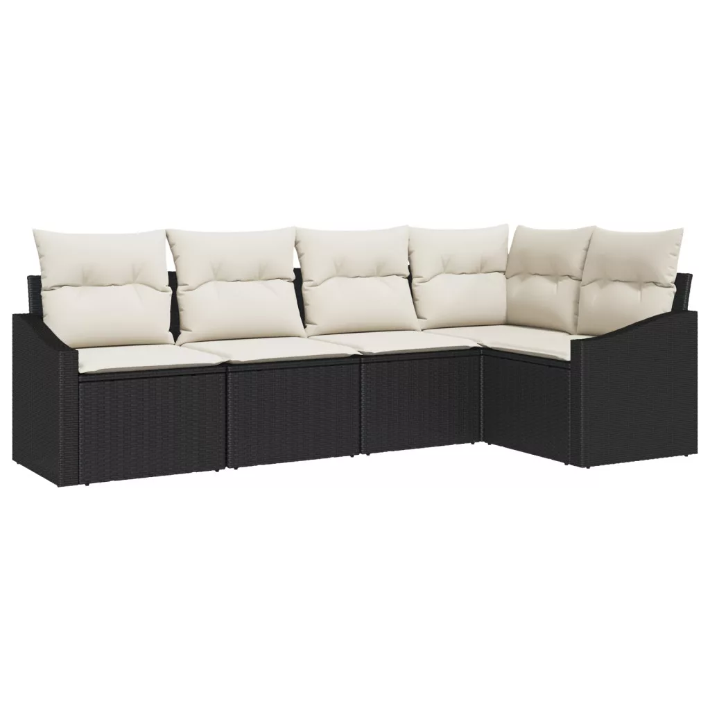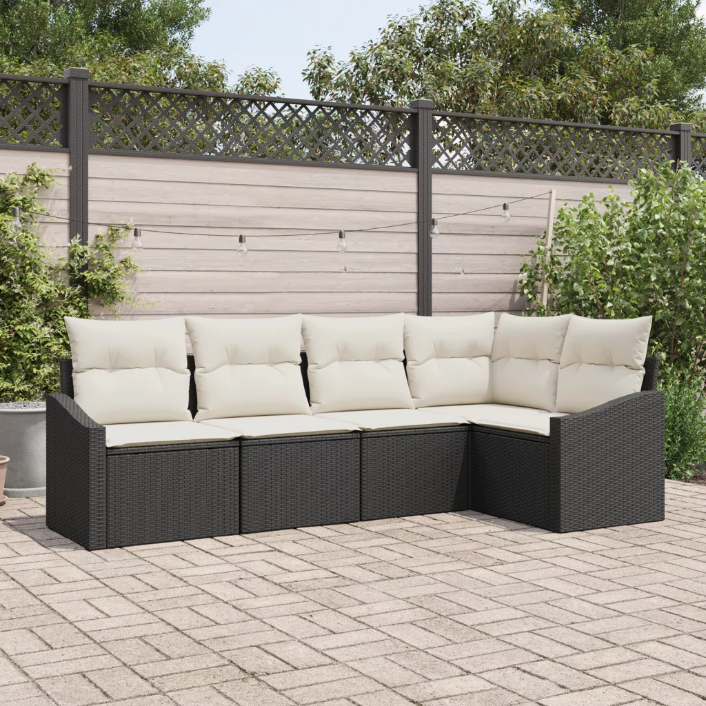 5 darabos kerti kanapé szett párnákkal fekete poli rattan