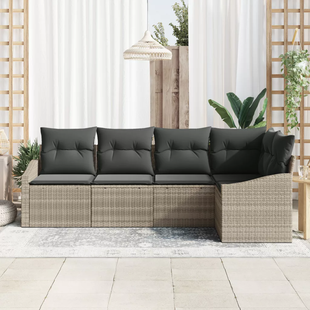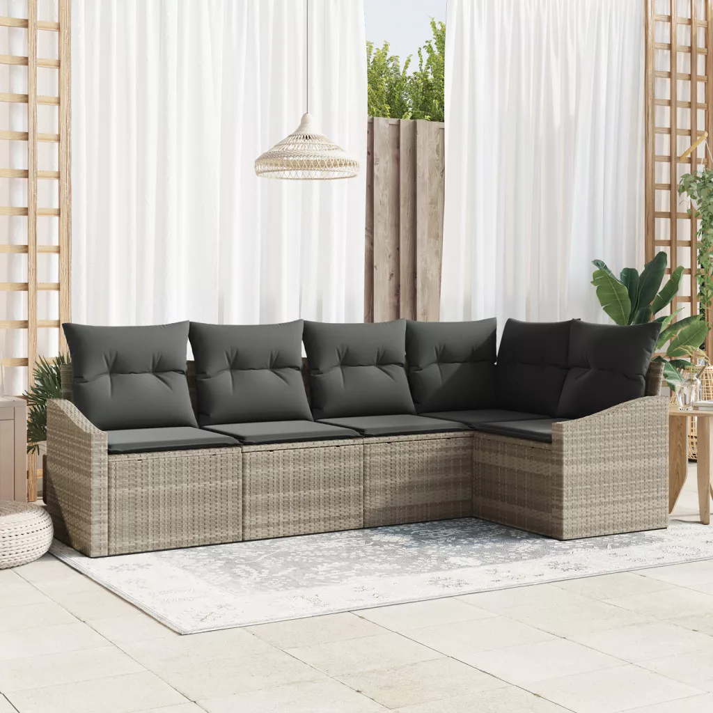 5 Darabos Kerti Kanapé Készlet Párnákkal Világosszürke Poli Rattan