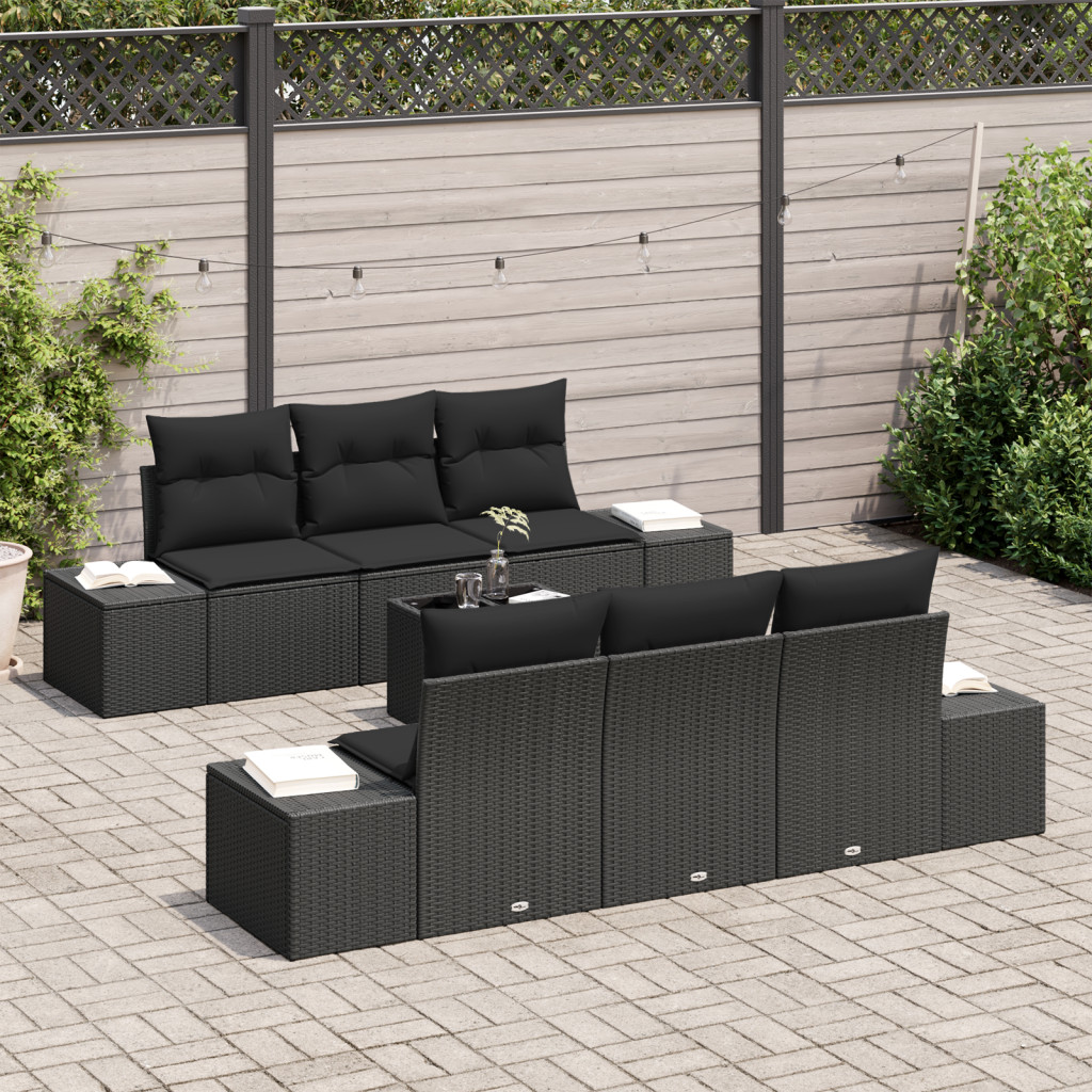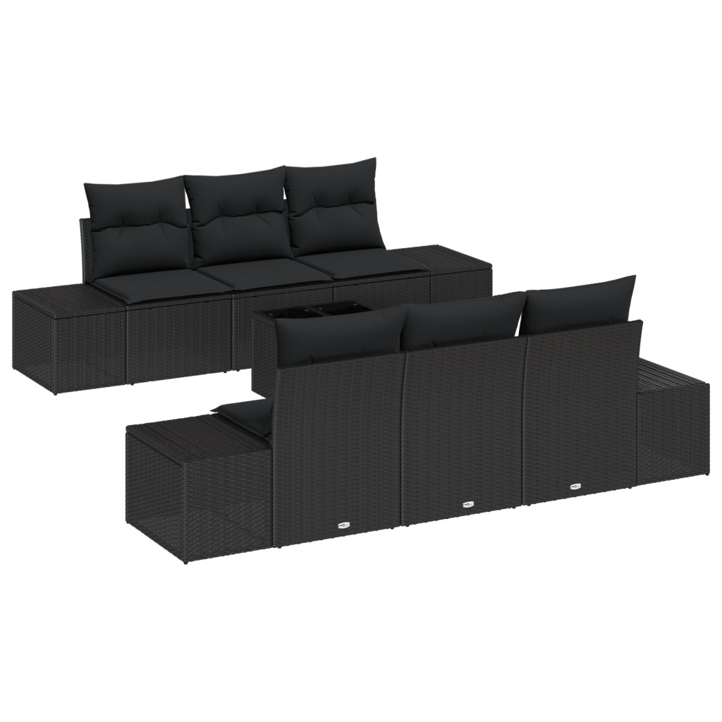 7 részes kerti kanapé készlet párnákkal fekete poli rattan