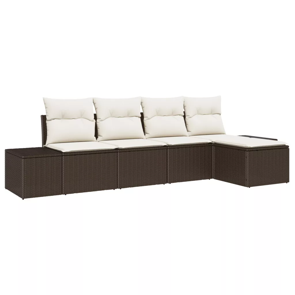 5 darabos kerti kanapé szett párnákkal barna poli rattan