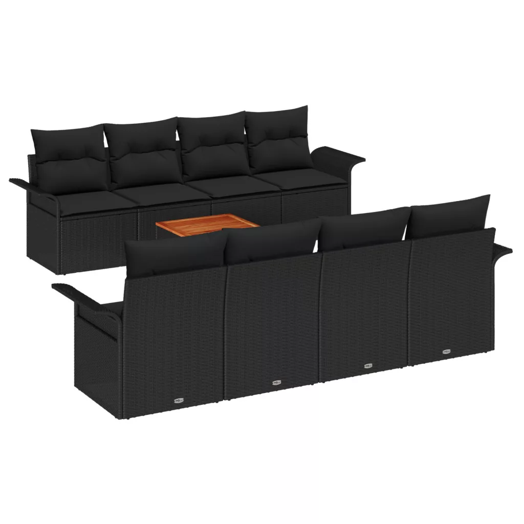 9 darabos kerti kanapé szett párnákkal fekete poli rattan akáccal