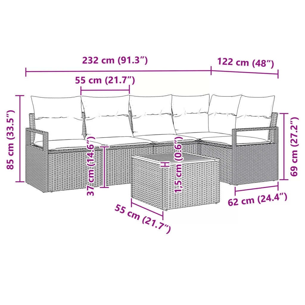 Ez a vidaXL 6 darabos kerti kanapé szett igazán klassz és praktikus, biztosítja a kényelmet a kültéri programokhoz vagy a lazításhoz az erkélyen. Kortárs dizájnjával és elegáns vonásaival ez a sokoldalú szett jól feldobja a kültéri életteredet, miközben az ötfős baráti társaság kényelmes ülést biztosít. Moduláris rugalmasság: A szett különálló darabokból áll, amiket szabadon mozgathatsz, így olyan elrendezéseket hozhatsz létre, amik passzolnak bármilyen alkalomhoz vagy térhez. Ideális barátok vendégül látásához vagy egy csendes este eltöltéséhez. Időjárásálló párnák: A párnák kültéri használatra készültek, és cipzárral rendelkeznek a könnyű eltávolításhoz és tisztításhoz, megőrizve a formájukat és kényelmüket. Ez megnyugtató, ha ki is hagyod őket az esőben. Tartós váz: A szilárd porbevonatú acélváz nagy szilárdságot ad, és ellenáll a rozsda és a korrózió ellen, ezért a kanapé szett egy tartós befektetés, ami bármilyen időjárást kibír. Elegáns rattan befejezés: Kézzel szőtt rattan elegáns megjelenést kölcsönöz, míg a matt felület illik a modern stílusokhoz, remekül passzolva a kültéri dekorációhoz. Generózus tér: Bőséges ülőhellyel, négyszögletes formájú, ez a szett remek étkezéshez vagy lazításhoz, így könnyedén összegyűjtheted a barátaidat és családtagjaidat a teraszos találkozókhoz.