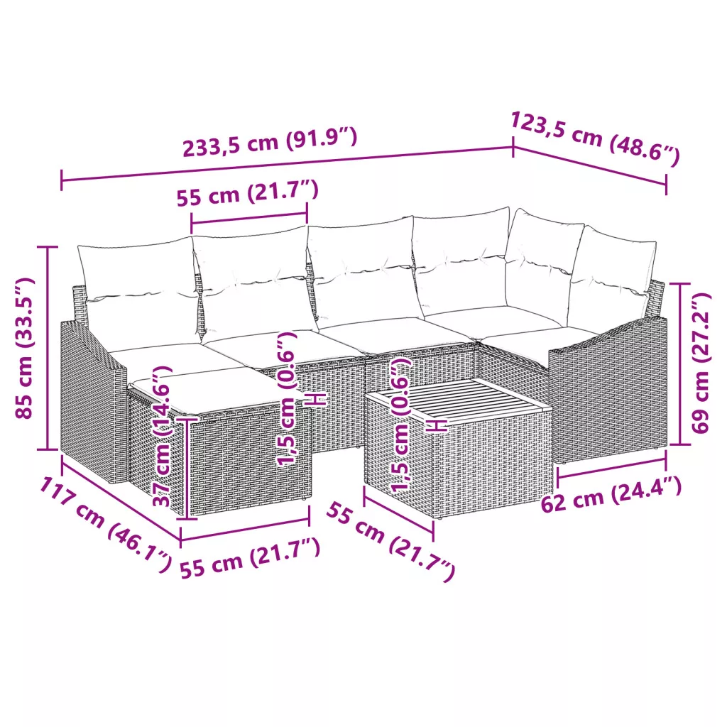 8 Darabos Kerti Kanapé Szett Párnákkal Bézs Poli Rattan Akác