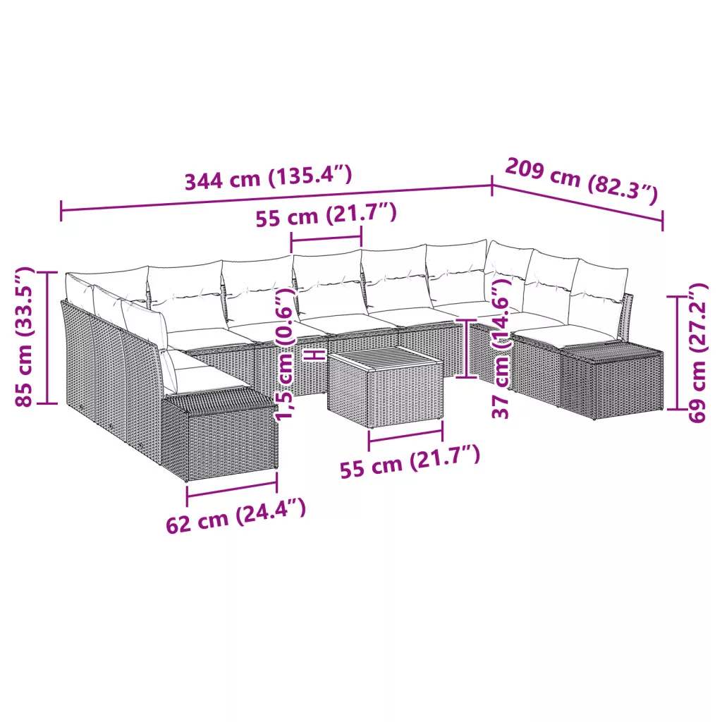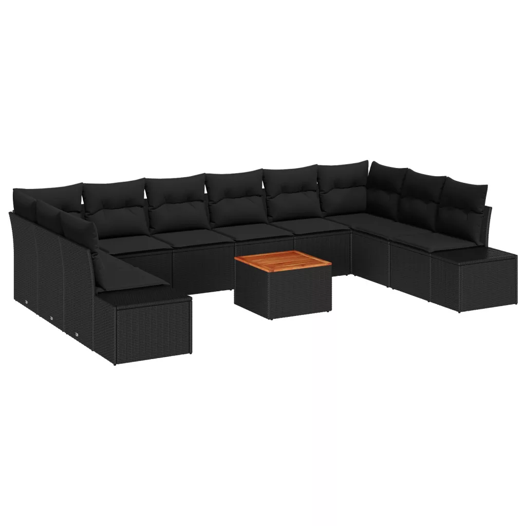11 Darabos Kerti Kanapé Szett Párnákkal Fekete Poli Rattan Akáciáért