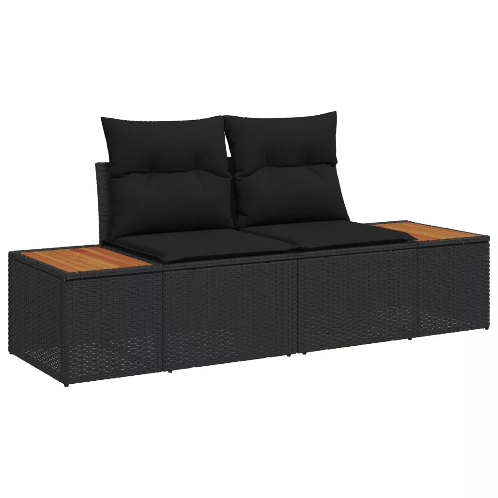 8 darabos kerti kanapé szett párnákkal fekete polirattan akácia