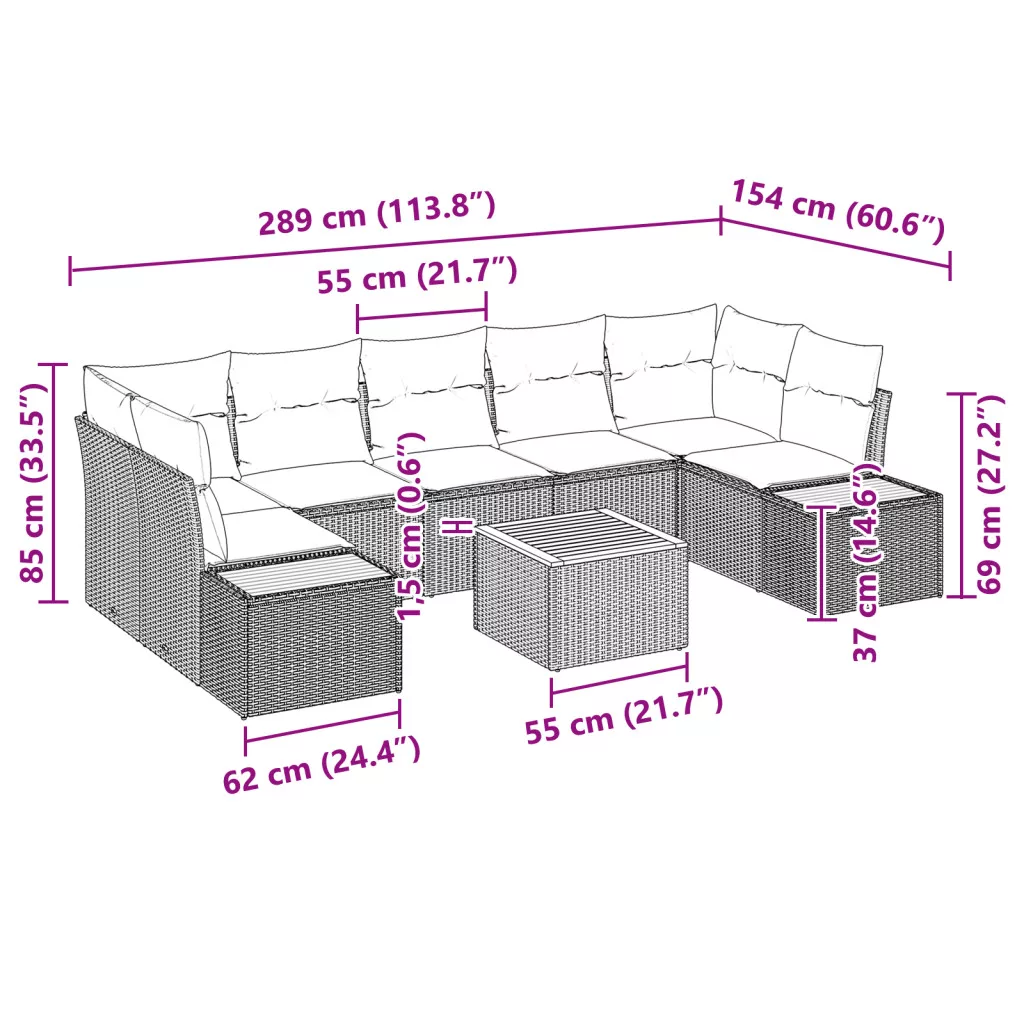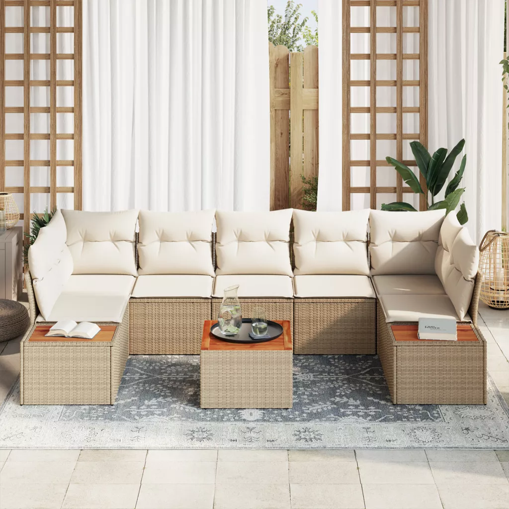 8 Darabos Kerti Kanapé Szett Párnákkal Bézs Poli Rattan Akác
