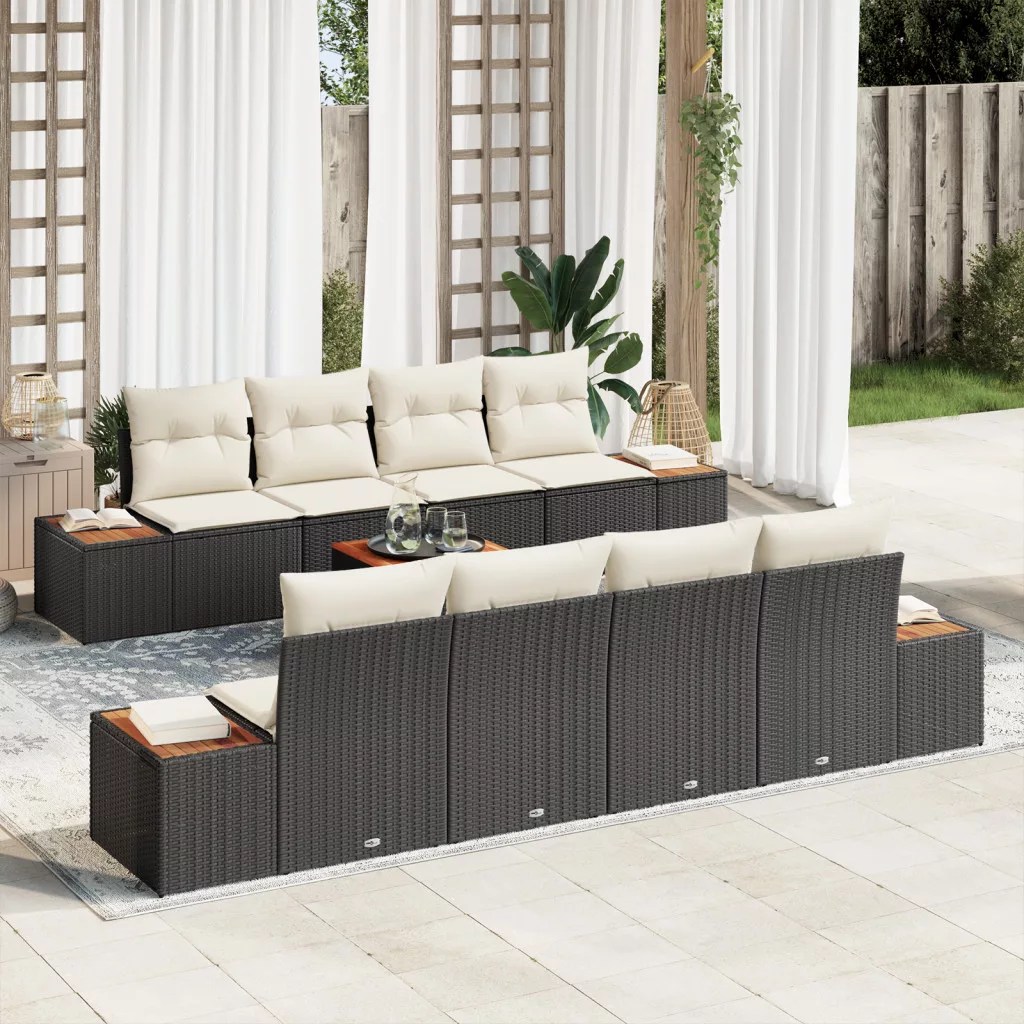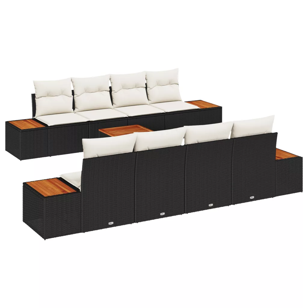 9 Darabos Kert Kanapé Szett Párnákkal Fekete Poli Rattan Akácia