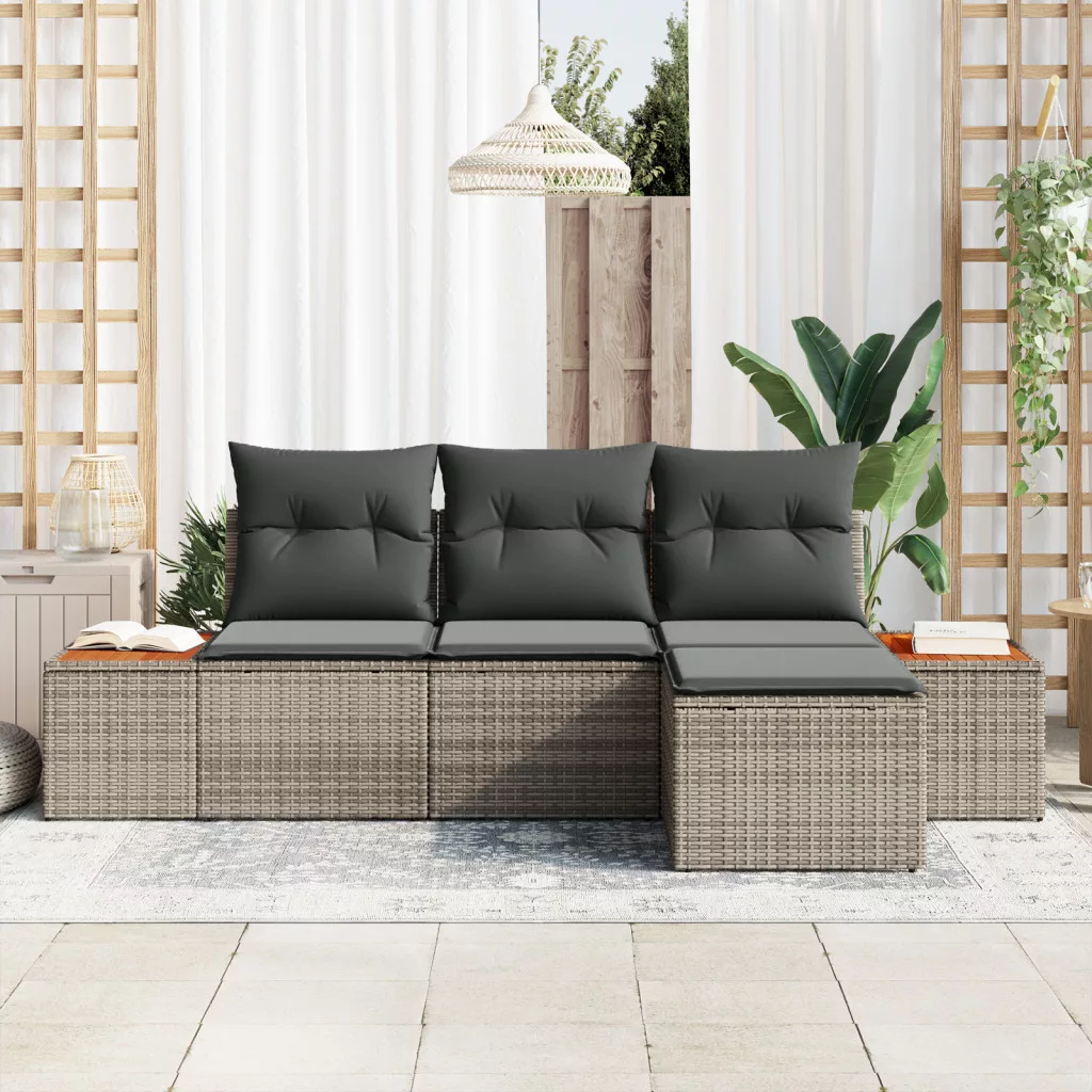 4 Darabos Kerti Kanapé Szett Párnákkal Szürke Poli Rattan Akácia